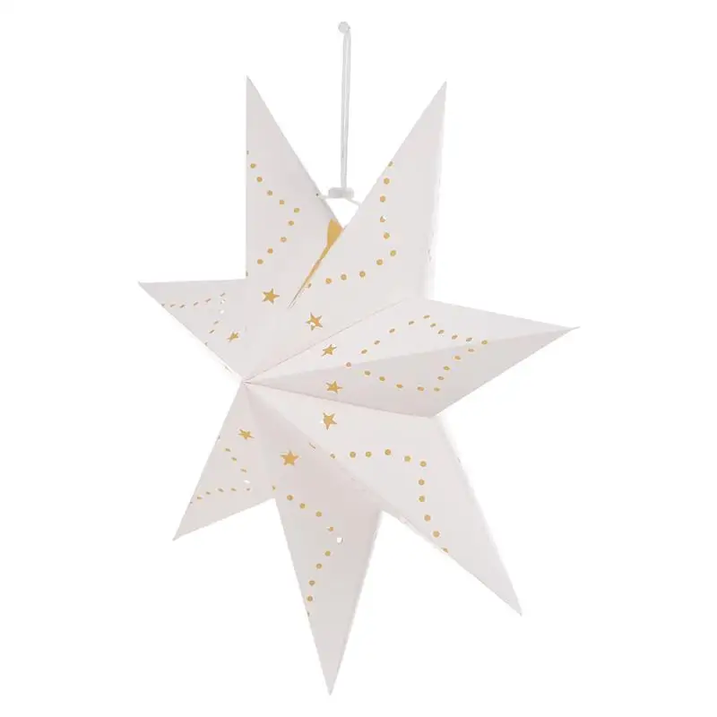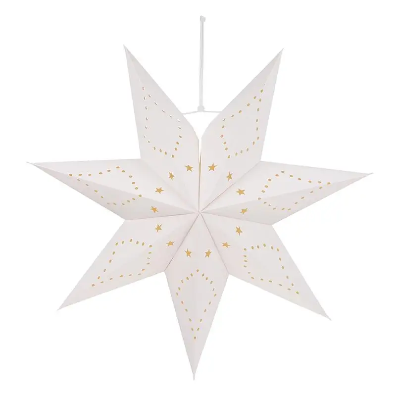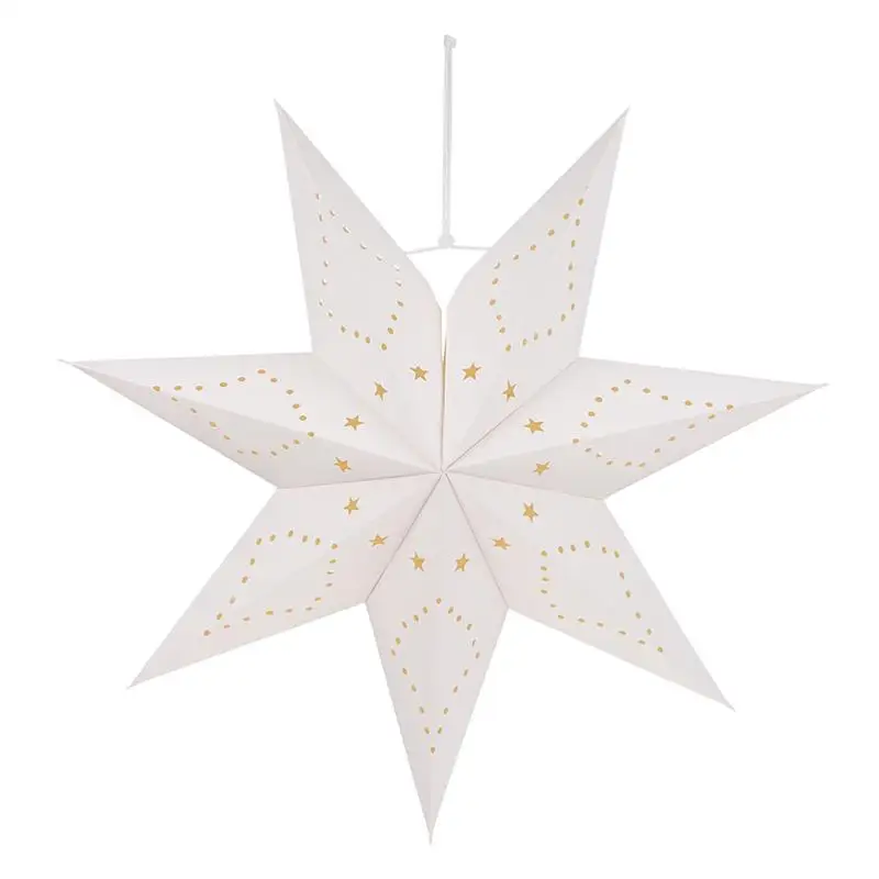 Этот товар представляет собой подвесную лампу для украшения. Этот креативный полый светильник в форме звезды изготовлен не только для украшения дома, но и для украшения на фестивале, в канун нового года, свадьбе и других вечеринках. Это обязательно будет точкой фокуса в любой сцене! Особенности -Цвет: белый. -Материал: бумага -Это хороший подвесной светильник для домашнего или праздничного украшения. -Легко установить, можно прикрепить на любую рождественскую елку, стены и окна. -Добавьте праздничную атмосферу для любого места, например дома, магазина, витрины и т. д. -Сделайте Отличное дополнение к вашей особенной ночи. Отличное сценическое устройство подсветки для выполнения. -Украшение фестивалей, вечеринок, свадеб, дома, ресторанов, гостиной, баров и особых случаев. Упаковочный лист1 х крышка лампы