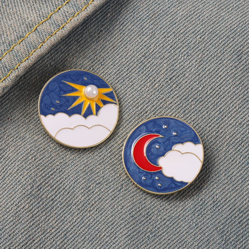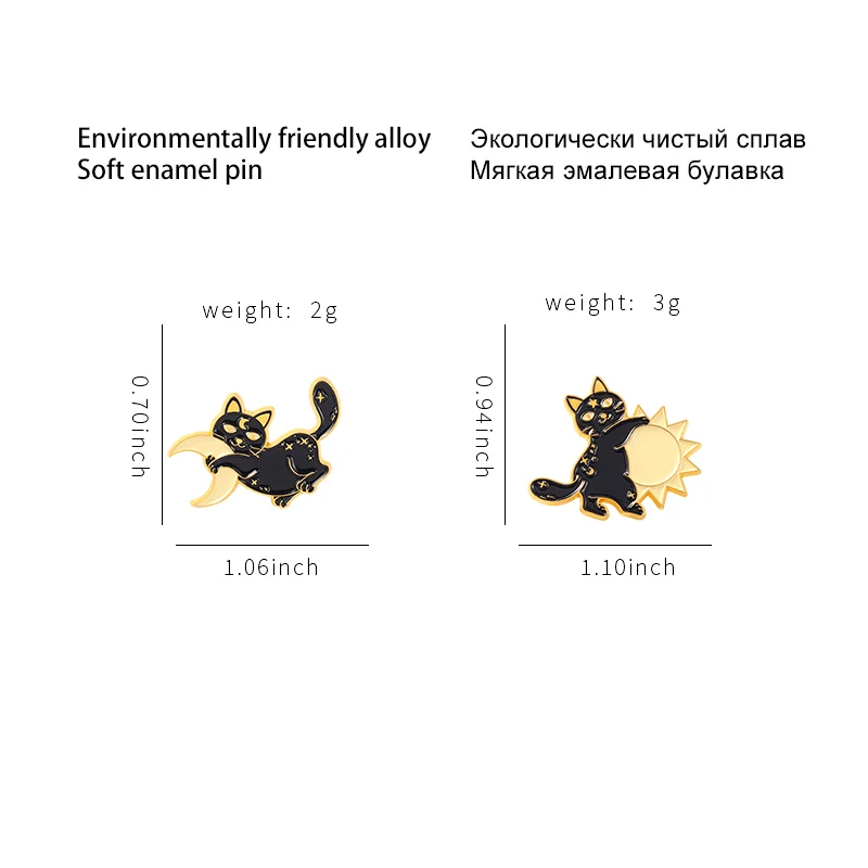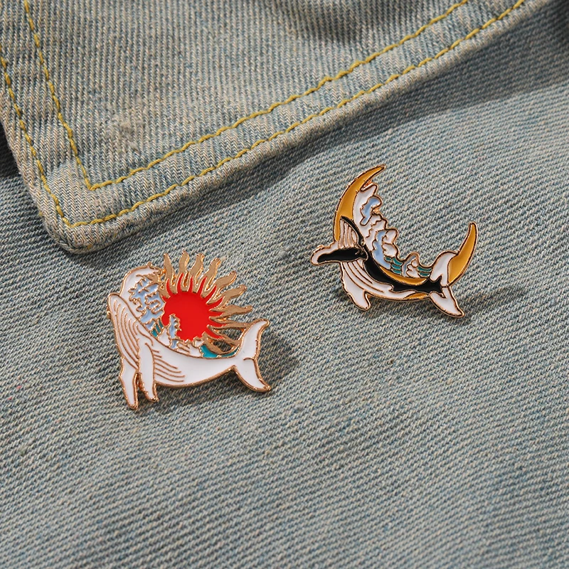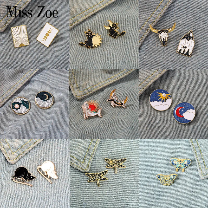 2 шт.компл. эмалированная булавка в виде Солнца и Луны, черная, белая, дневная, ночная, мотыльная, кошка, Кита, волк, крыса, лиса, брошь на сумку, одежду, значки, модные ювелирные изделия
