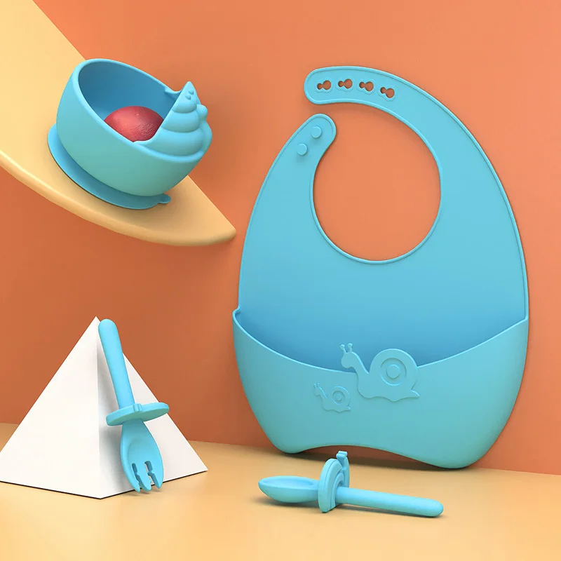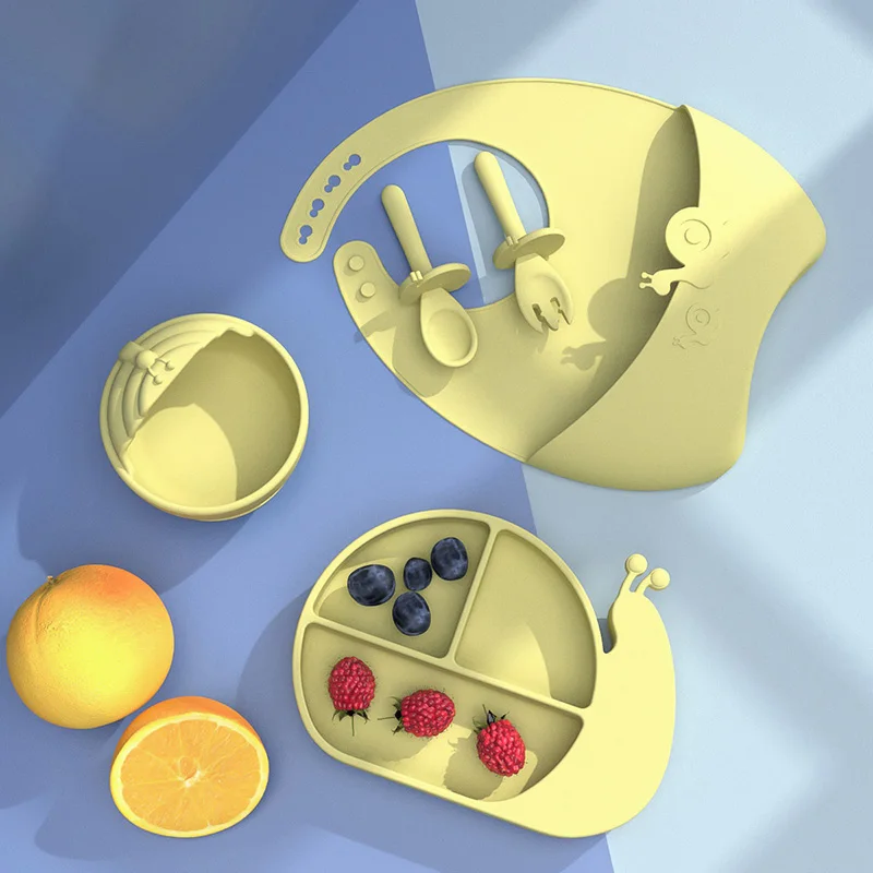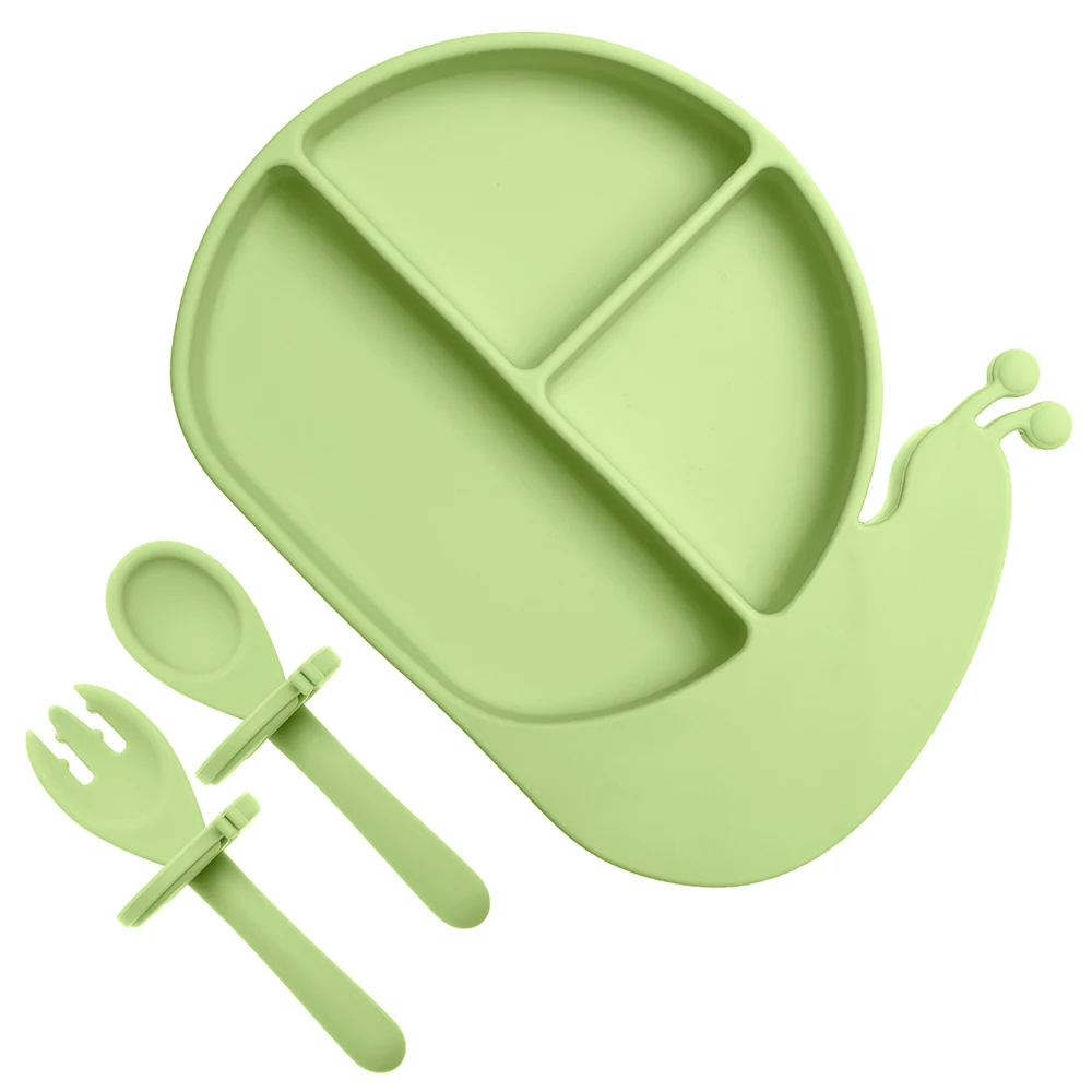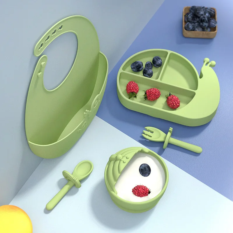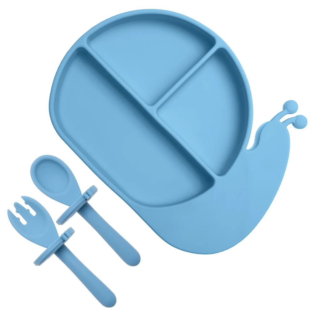Силиконовые наборы посуды для кормления малышей, водонепроницаемая обеденная тарелка с мультяшным рисунком улитки, силиконовые блюда для кормления малышей, детская посуда
