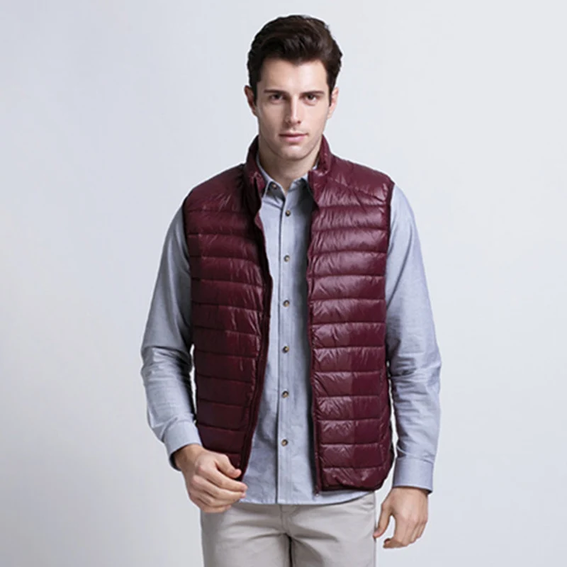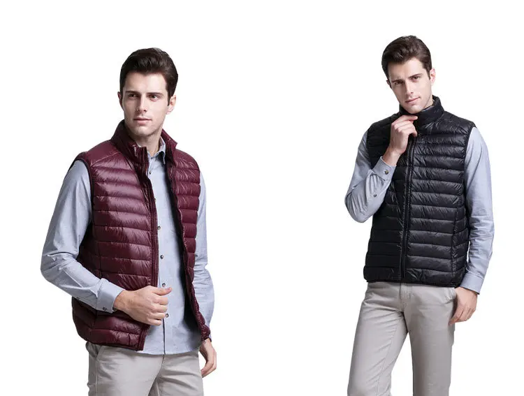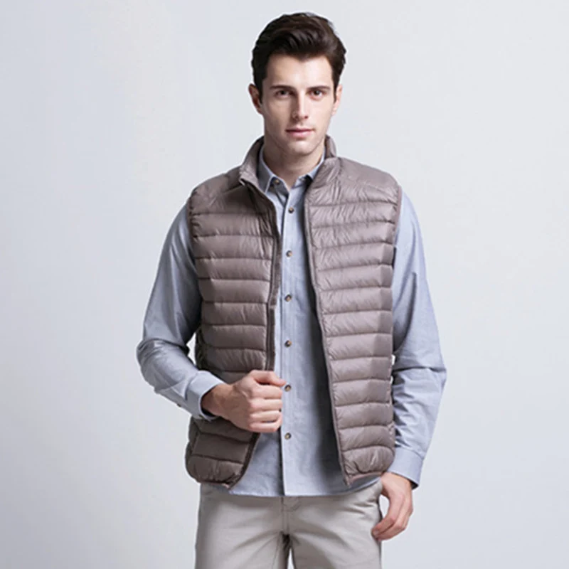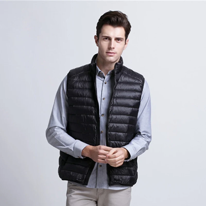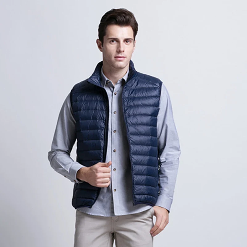 Мужские жилеты на утином пуху, новинка 2022, осенне-зимний ультра-светильник, пышный жилет, повседневный портативный жилет без рукавов, ветрозащитная мужская жилетка