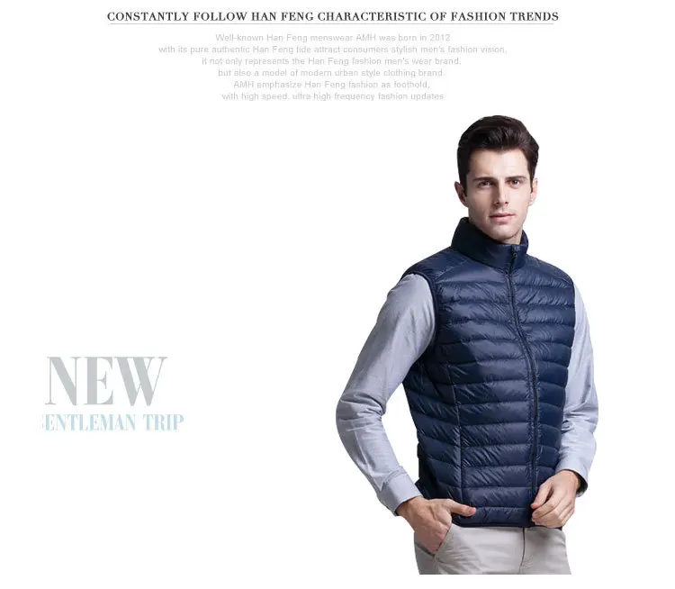 Жилет мужской пуховой, модный легкий однобортный жилет, повседневны...