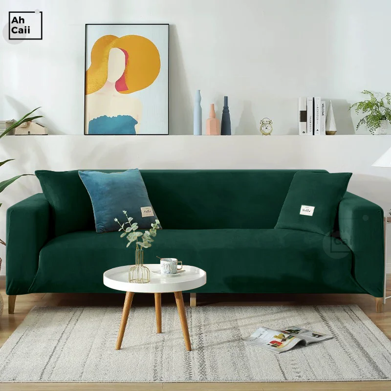 Бархатный Чехол для дивана, чехол для гостиной на 3 места, толстый чехол для дивана, зеленые чехлы для кресел, Регулируемый угловой чехол
