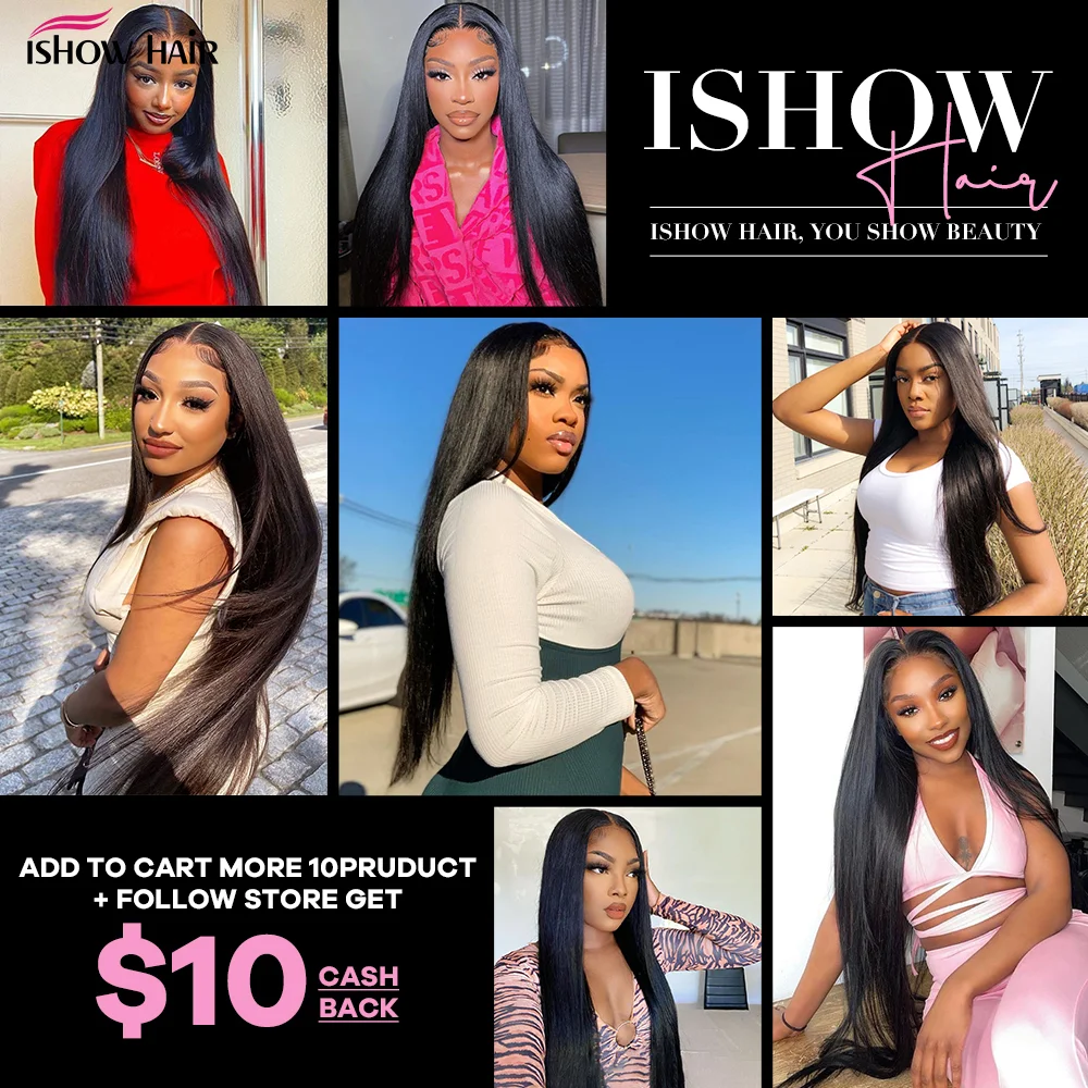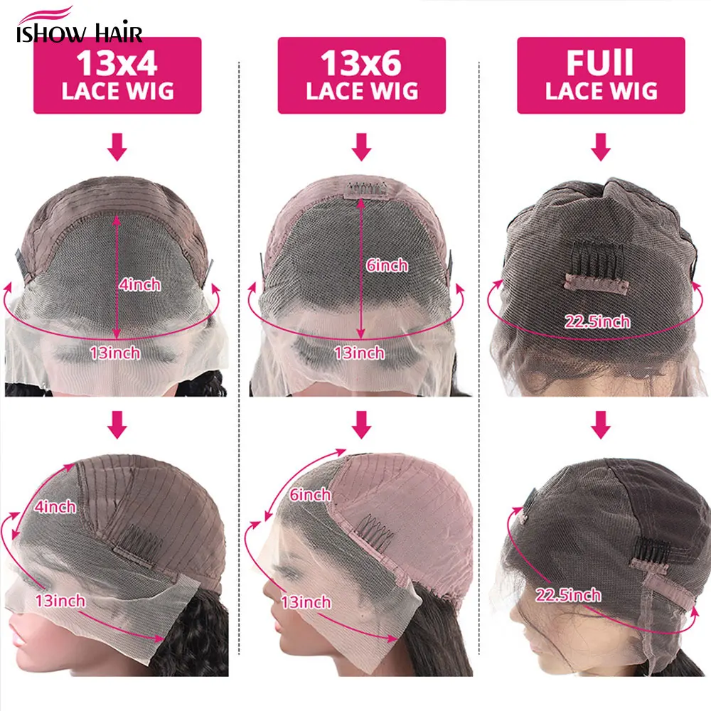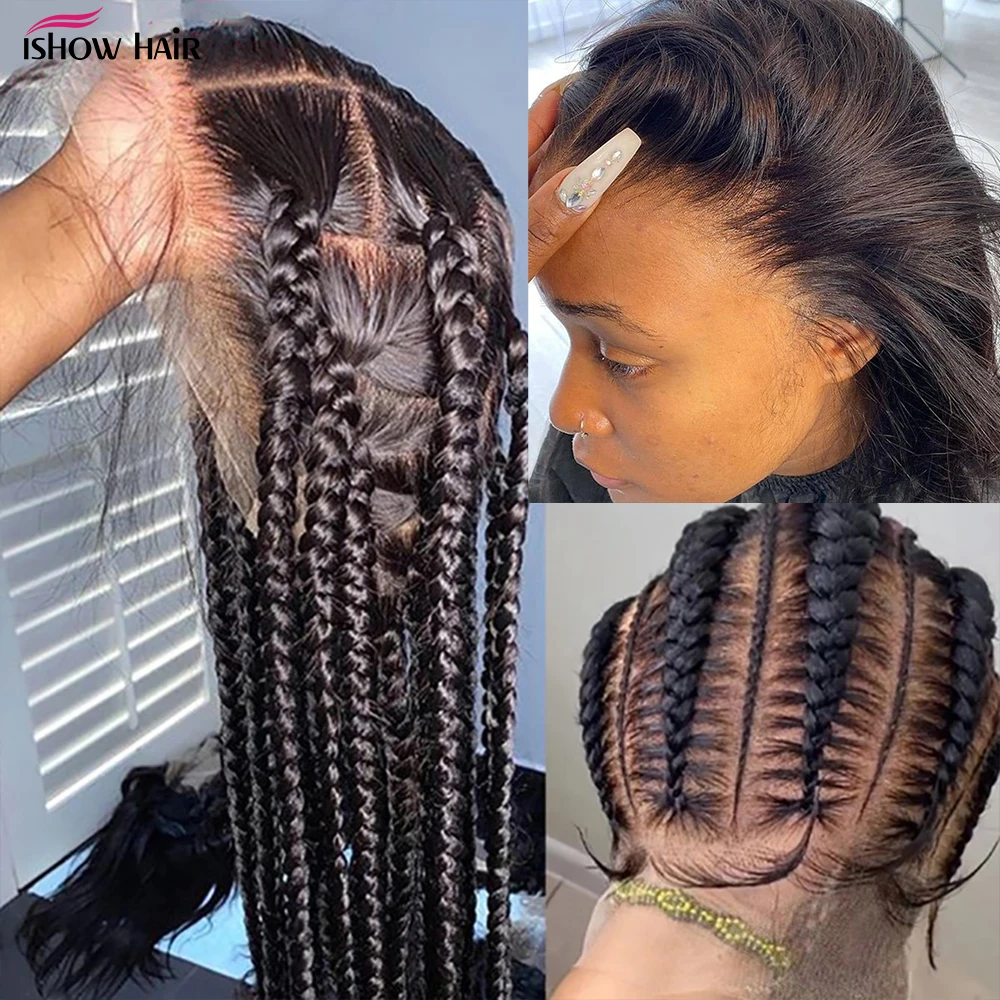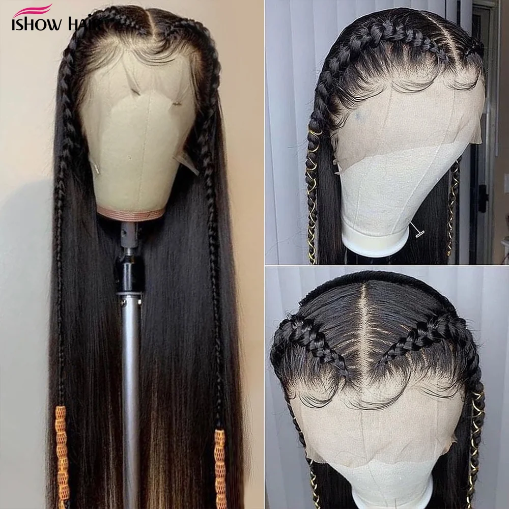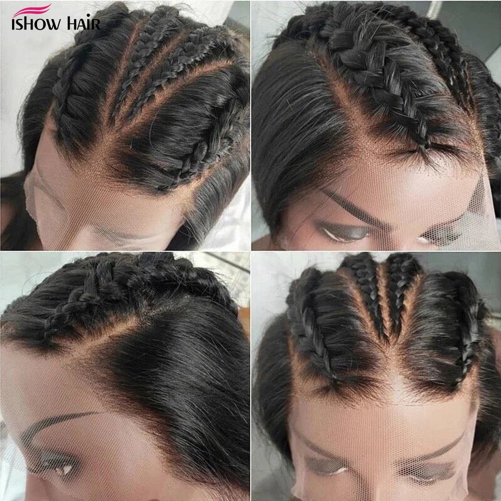 Парик Ishow из человеческих волос, со сплошной кружевной прозрачной передней частью, 30 дюймов, без клея, с предварительным выщипыванием