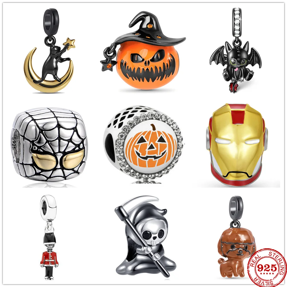Новые оригинальные серебряные подвески в виде летучей мыши, солдата, тыквы, кошки, подходят для шармов Пандоры, серебряные бусины 925, браслет для женщин, ювелирные изделия сделай сам, подарок