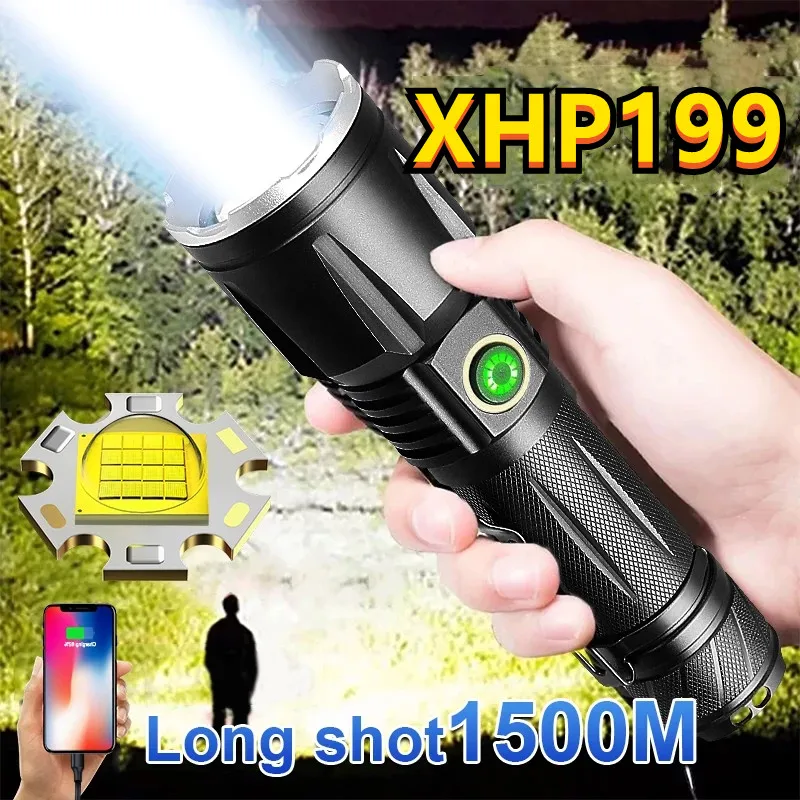 Супер мощный яркий светодиодный фонарик XHP199, перезаряжаемый такт...