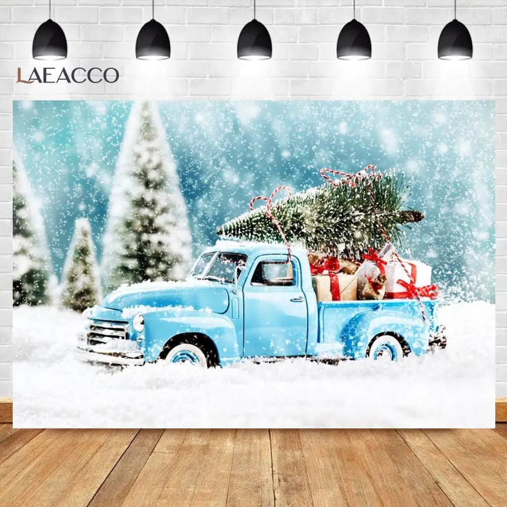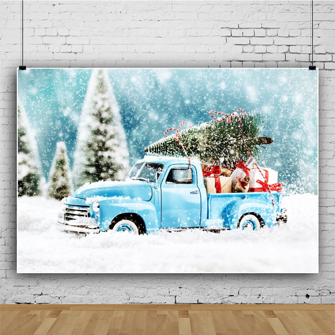 Рождественские фоны для фотосъемки с изображением новогодней елки грузовика праздвечерние чного елки в горошек снега ребенка фотозона Фотография фона