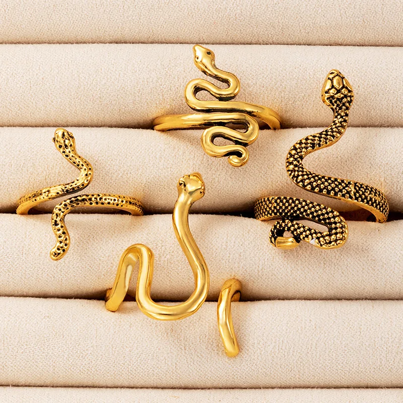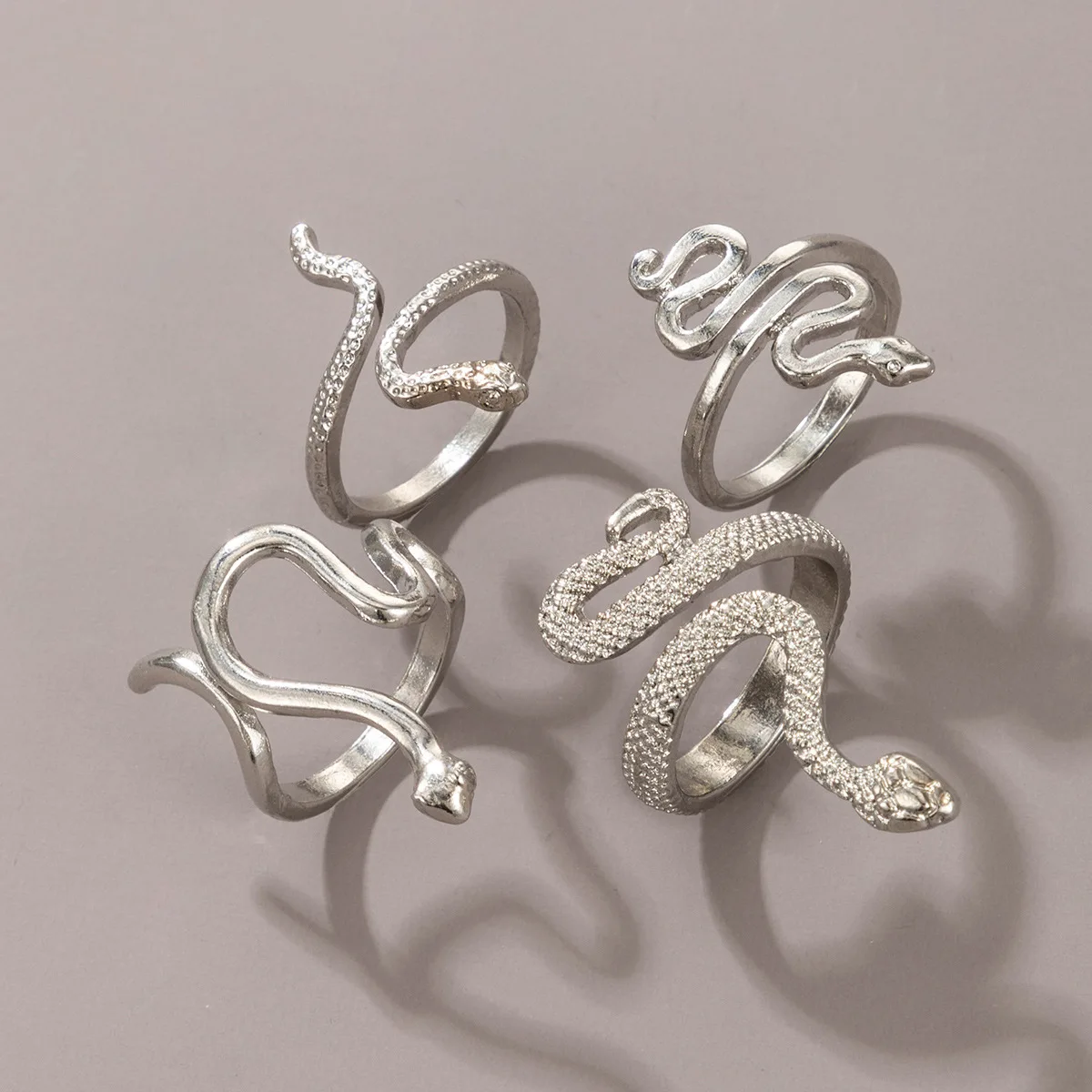 Зеленые украшения, винтажный Ретро набор колец в виде змеи, 4 шт., геометрические кольца гранж-панк в стиле хип-хоп, готические кольца, бесплатная доставка, черный цвет, Хэллоуин