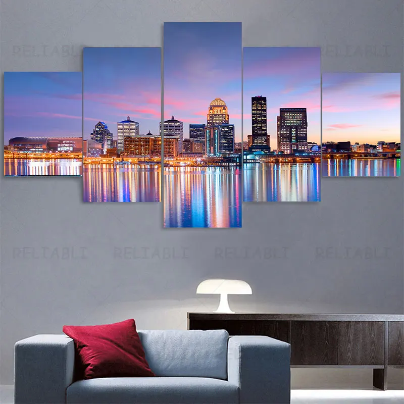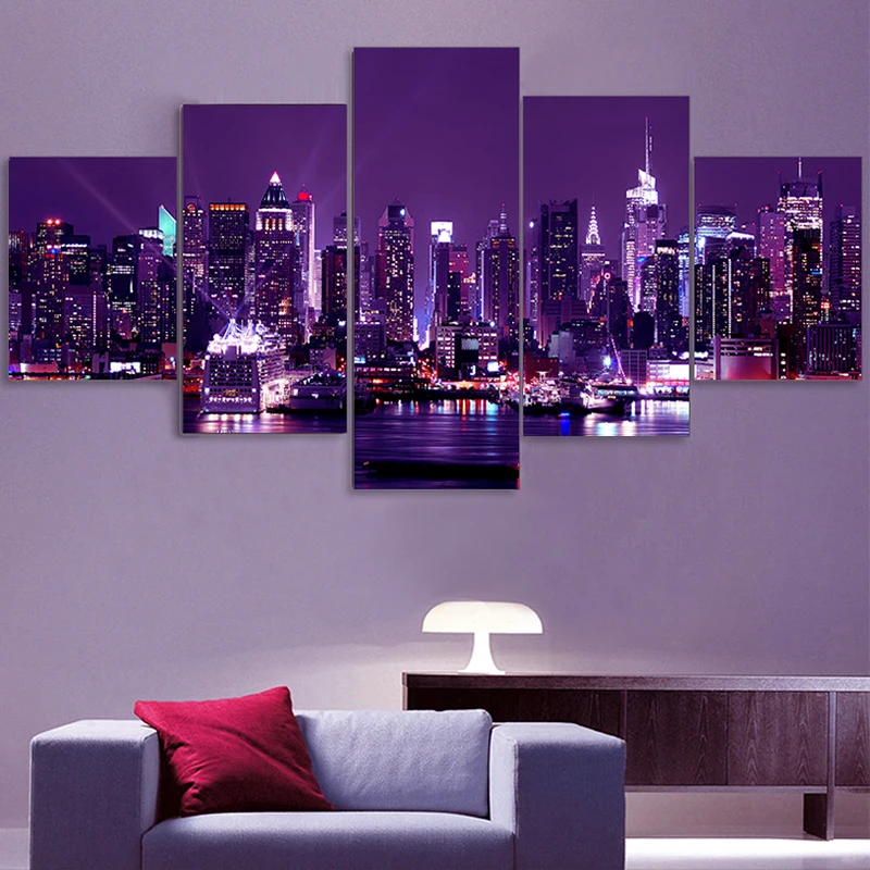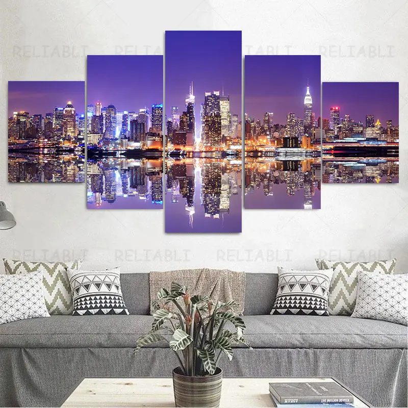5 панелей Холст Живопись стены Искусство Нью-Йорк Строительство пейзаж картины печать ночной вид Пейзаж Плакат домашний декор