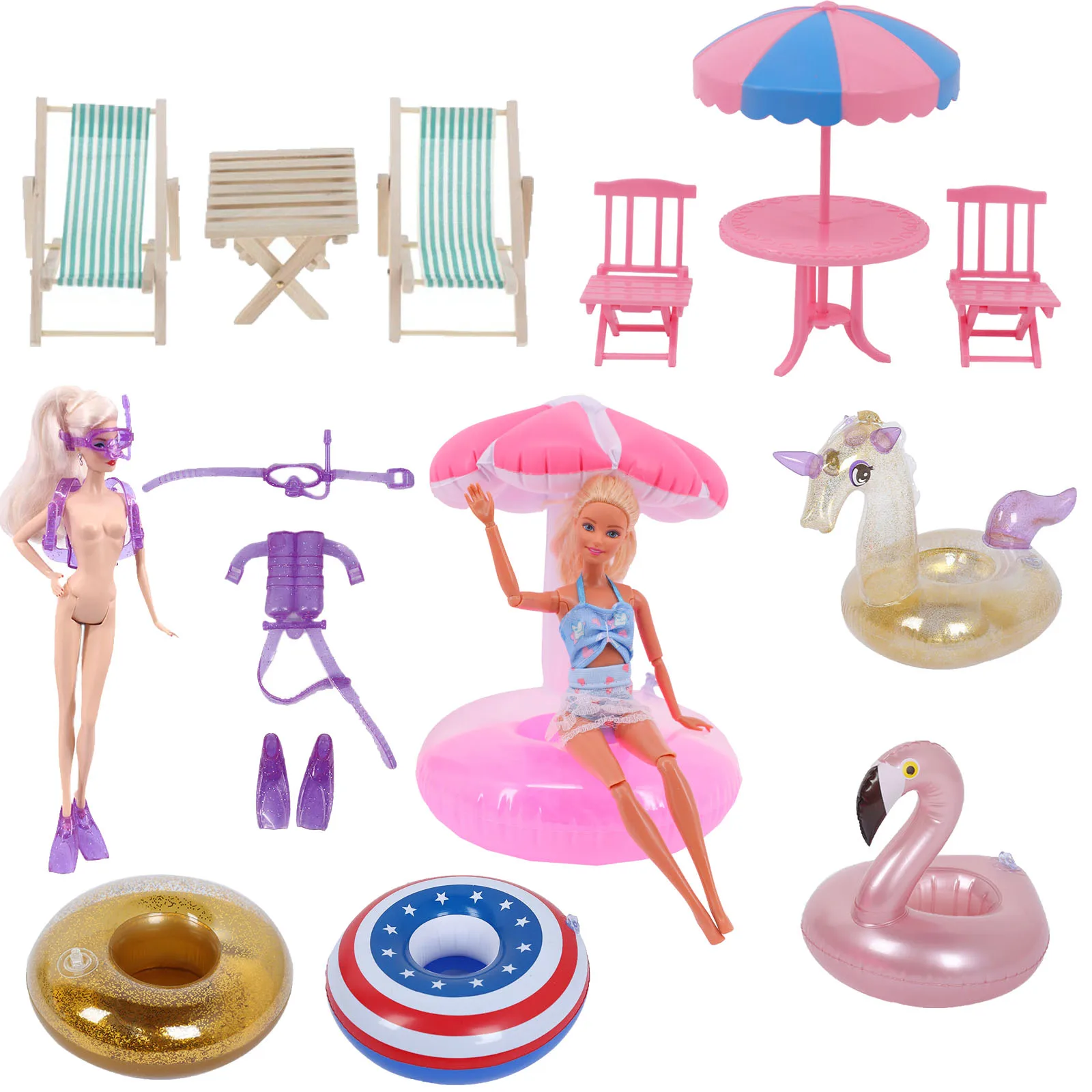Аксессуары для кукол, пляжный стул для отпуска, плавательный круг, костюм для дайвинга для Барби 16, шарнирная кукла, забавные игрушки, подарок для детей