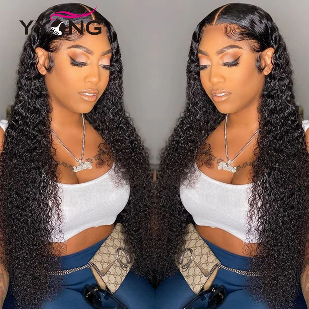 Yyong 30 32 дюймовые вьющиеся человеческие волосы 13x6 прозрачные кудрявые вьющиеся кружевные передние человеческие волосы парики для женщин предварительно выщипанные кружевные парики