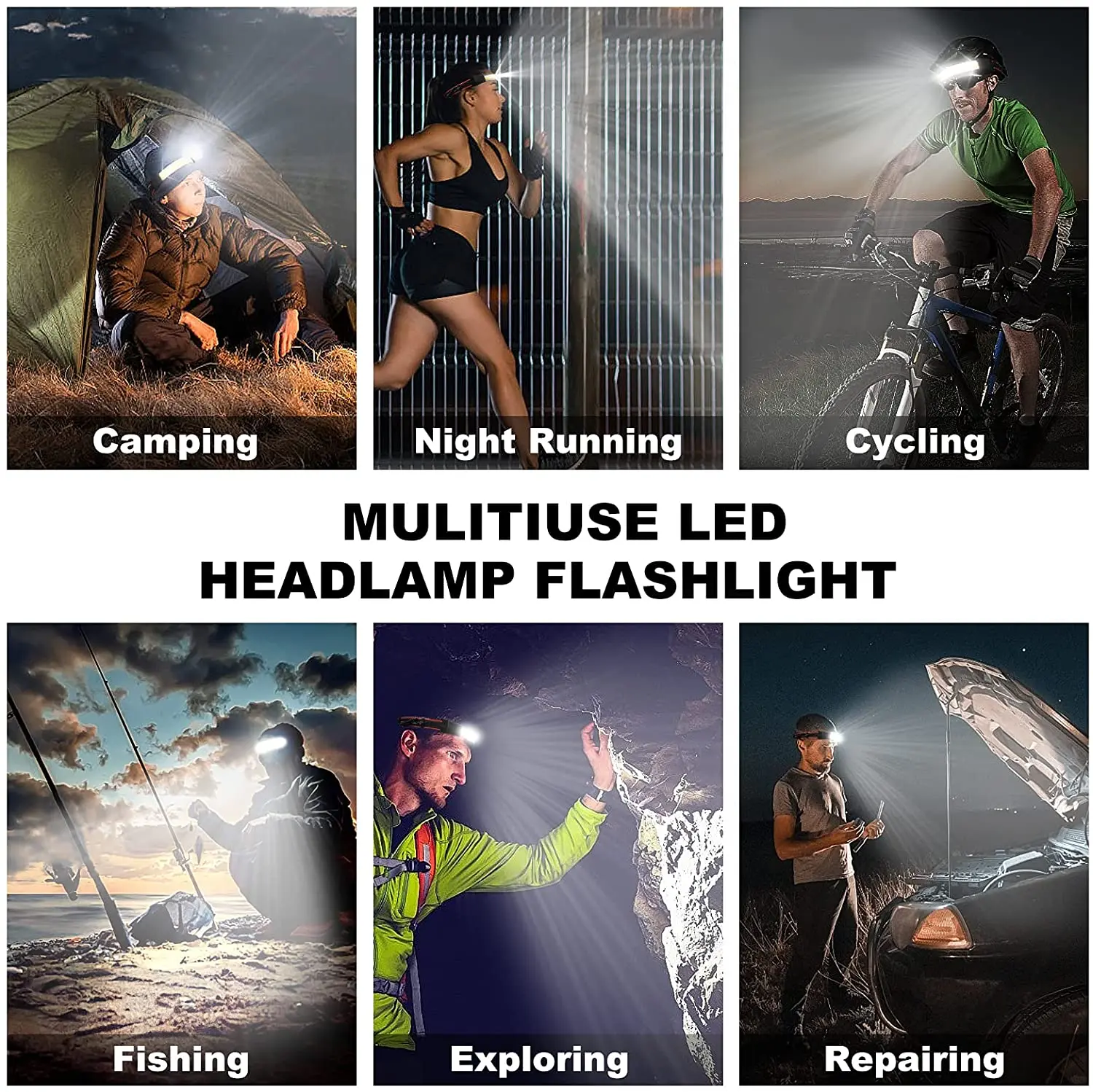 Светодиодные фары дальнего света, перезаряжаемые фары, светильник-вспышка, водонепроницаемый светильник, вес COB, головной светильник, светильник для рыбалки, бега, кемпинга