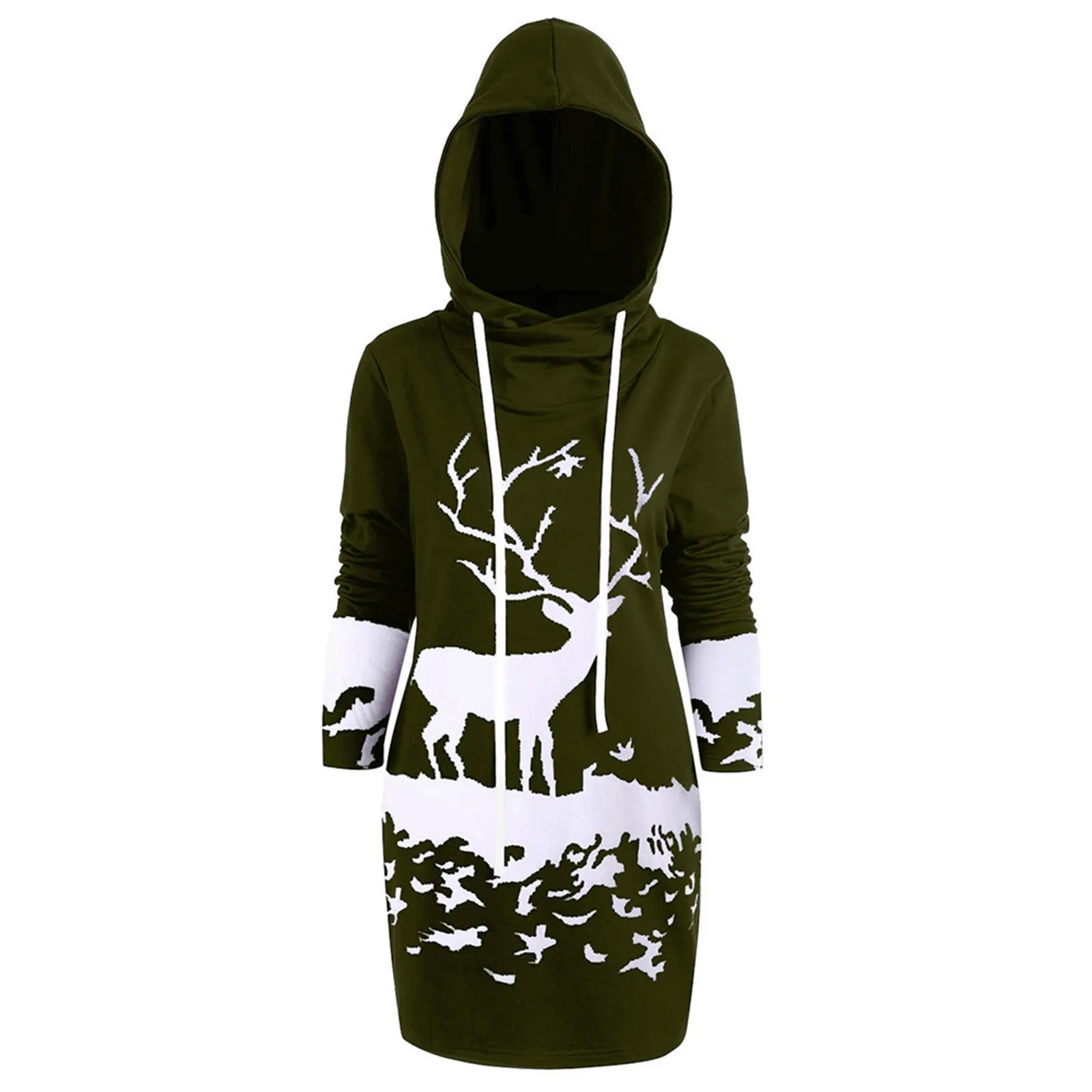 Женское осенне-зимнее платье с капюшоном и длинным рукавом
