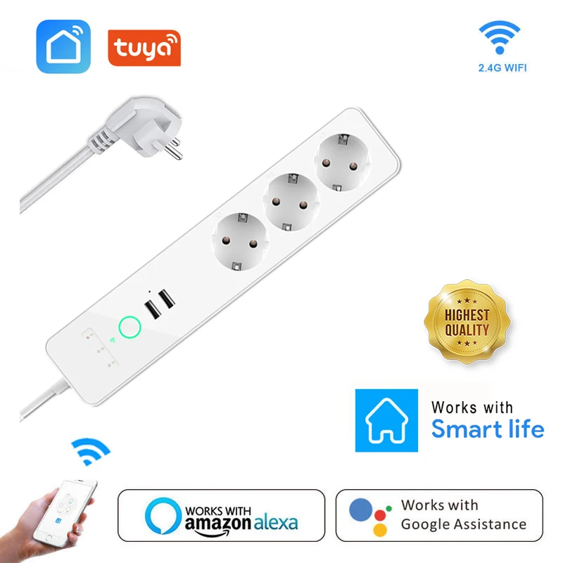 Удлинитель с Wi-Fi и таймером, умный сетевой фильтр с несколькими розетками и 2 USB-портами, с голосовым и беспроводным управлением через Echo Alexa Google Home