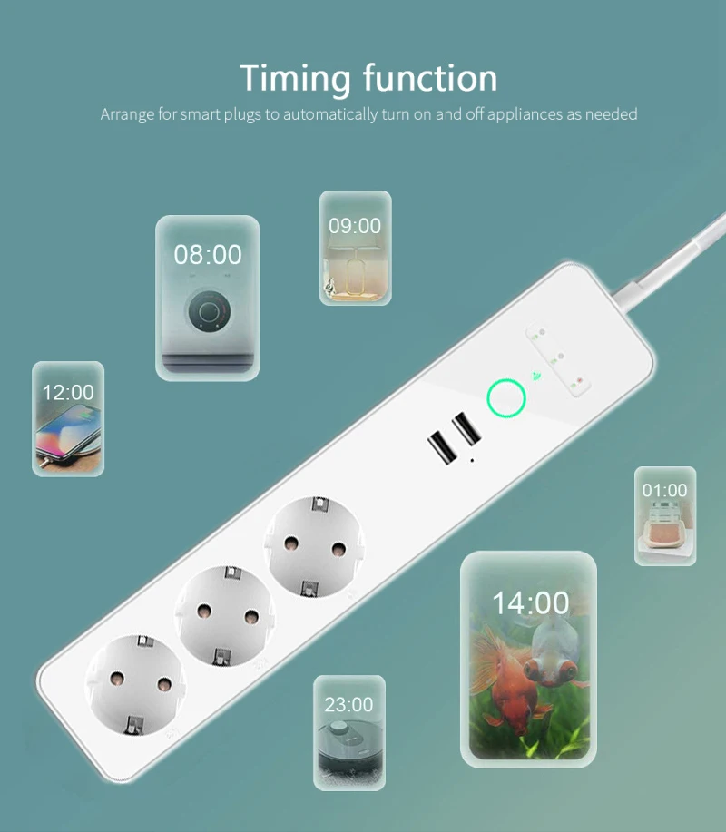 • 2 порта USB + 3 разъема-розетки контролируются самостоятельно, а порты USB используются как блок, который может управляться мобильными телефонами в любое время и в любом месте.