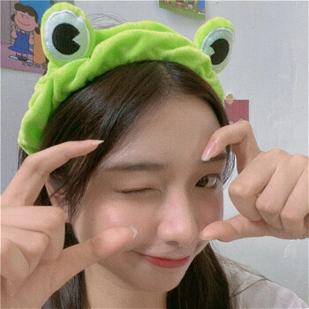 Повязка на голову с забавной лягушкой для макияжа, широкие эластичные повязки для волос, милые повязки для волос для девочек, женские аксессуары для волос, повязка для волос для девочек