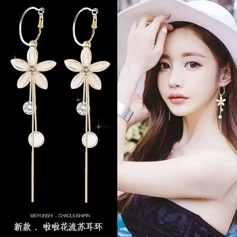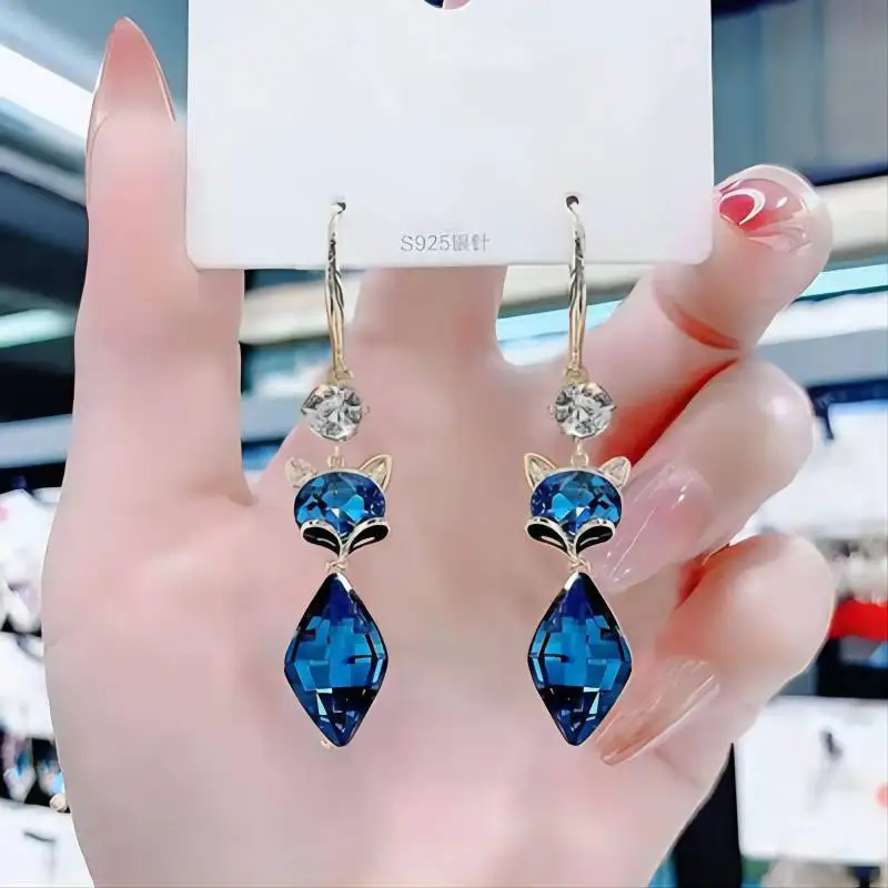 2021 новые корейские золотые Роскошные висячие серьги, женские модные длинные серьги с голубыми кристаллами и кисточками, ювелирные изделия, подарок на день рождения