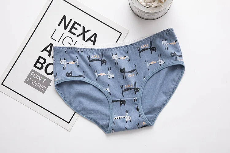 Женские хлопковые трусики, симпатичное нижнее белье с мультяшным котом, трусы, женское нижнее белье со средней посадкой, удобное нижнее белье, женские трусы