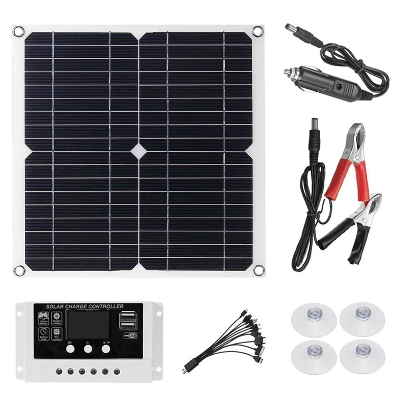 Солнечная панель 100 Вт, 2 USB-порта с контроллером 12 В, портативн...