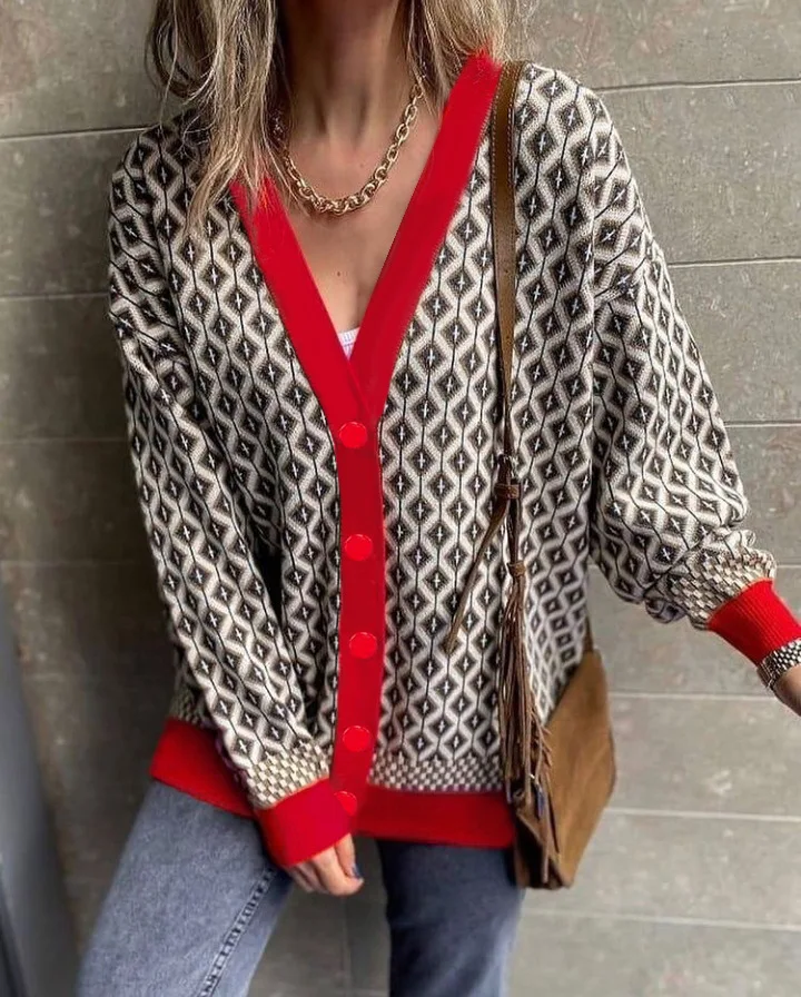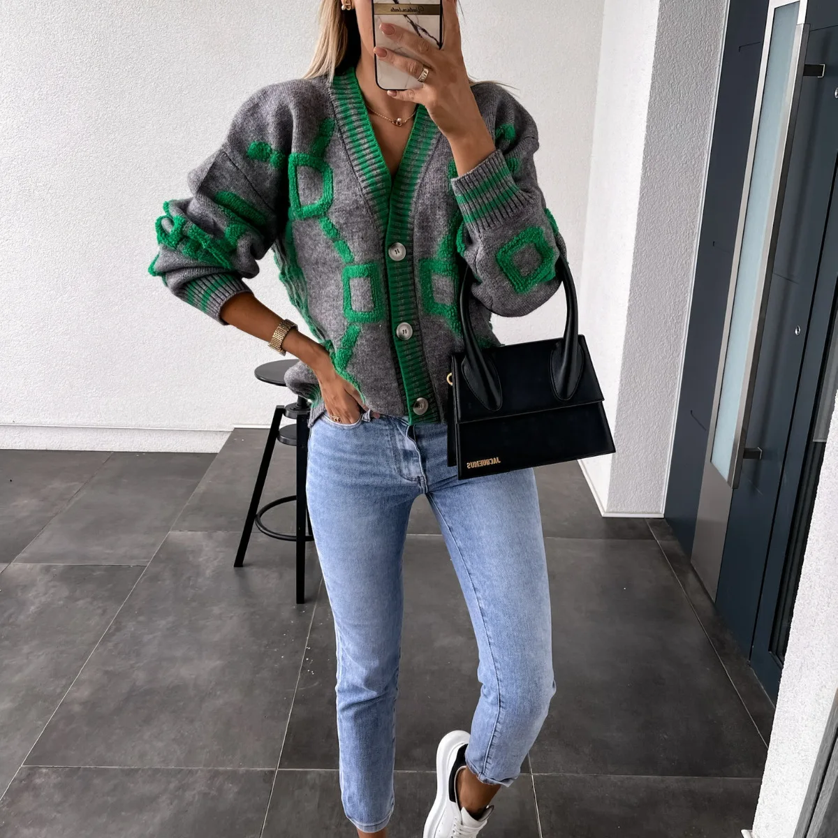 Женский трикотажный свитер на пуговицах, с длинным рукавом