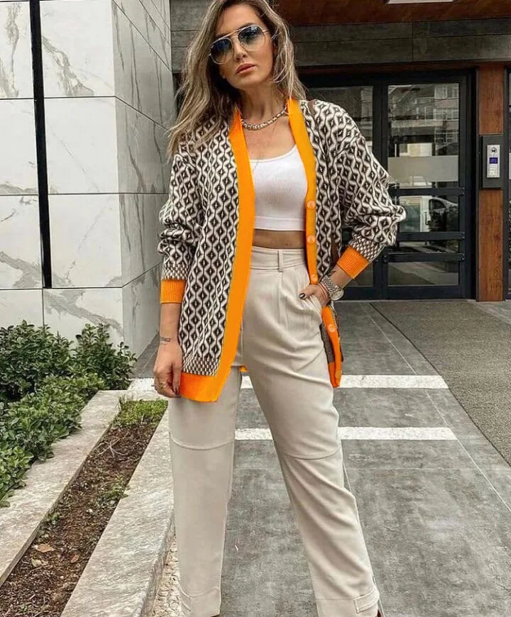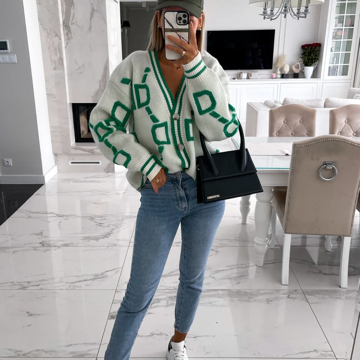 Женский вязаный кардиган с рисунком, свободная осенне-зимняя однобо...