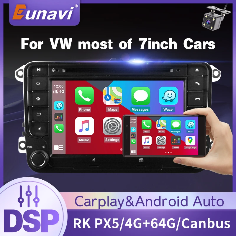 Eunavi 2 DIN Android 10 автомобильное радио для VW Passat B6 CC Polo GOLF 5 6 Touran Jetta Tiguan Magotan Seat мультимедийный плеер GPS 2Din