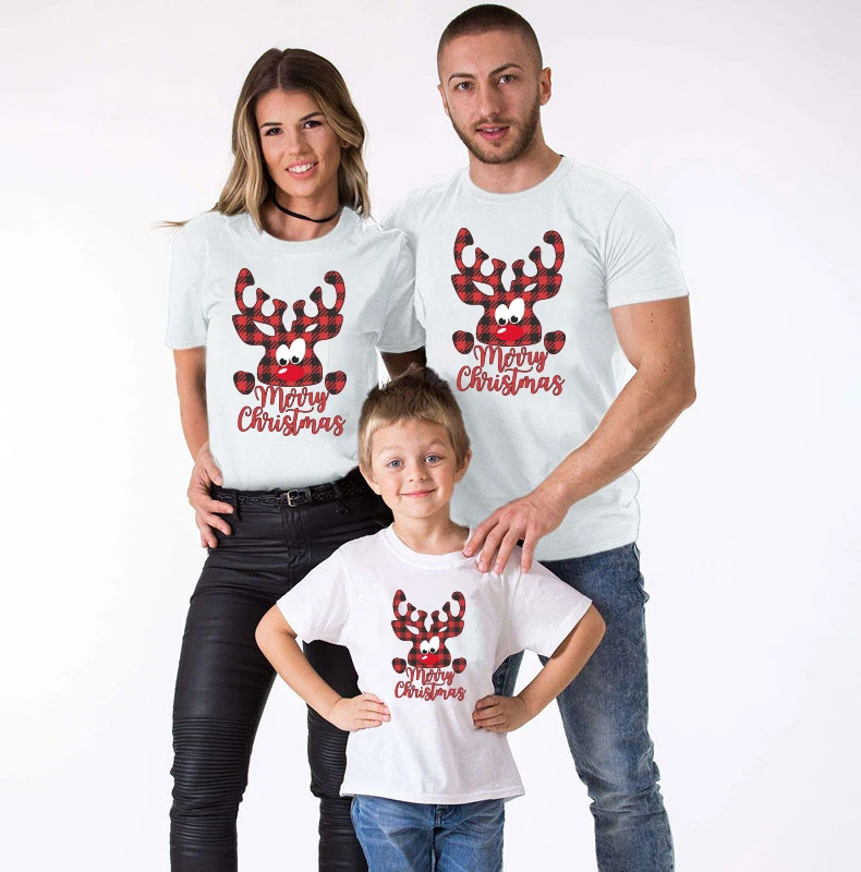 Семейные комплекты с рождественским оленем; Футболки для мамы, папы, дочки и сына; Рождественский подарок для семьи; Красные футболки с короткими рукавамиРождественская семейная футболка с оленем