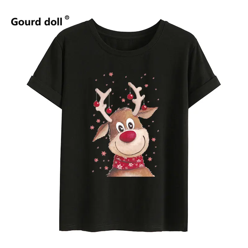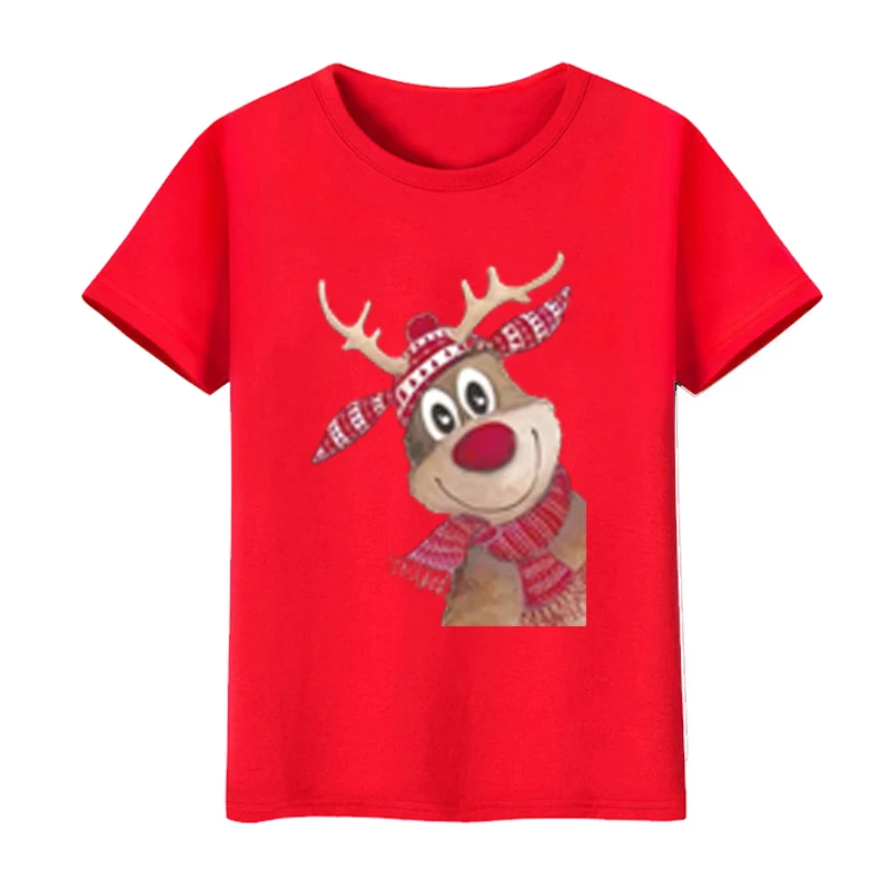 Рождественская семейная Одинаковая одежда с оленями, футболка для мамы, отца, дочери, сына, ребенка, рождественский семейный подарок, красный с коротким рукавом