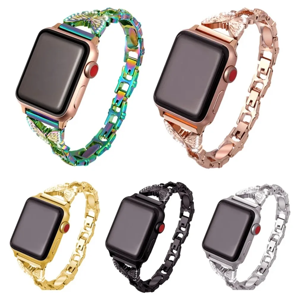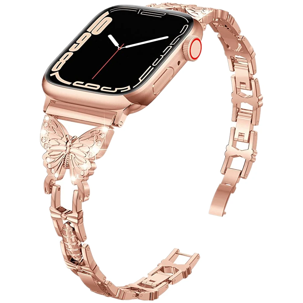 Ремешок из нержавеющей стали для Apple Watch 7 Band 41 мм 45 мм Series 6 SE 5 4 40 мм 44 мм, браслет-бабочка для iWatch 3 38 мм 42 мм для женщин