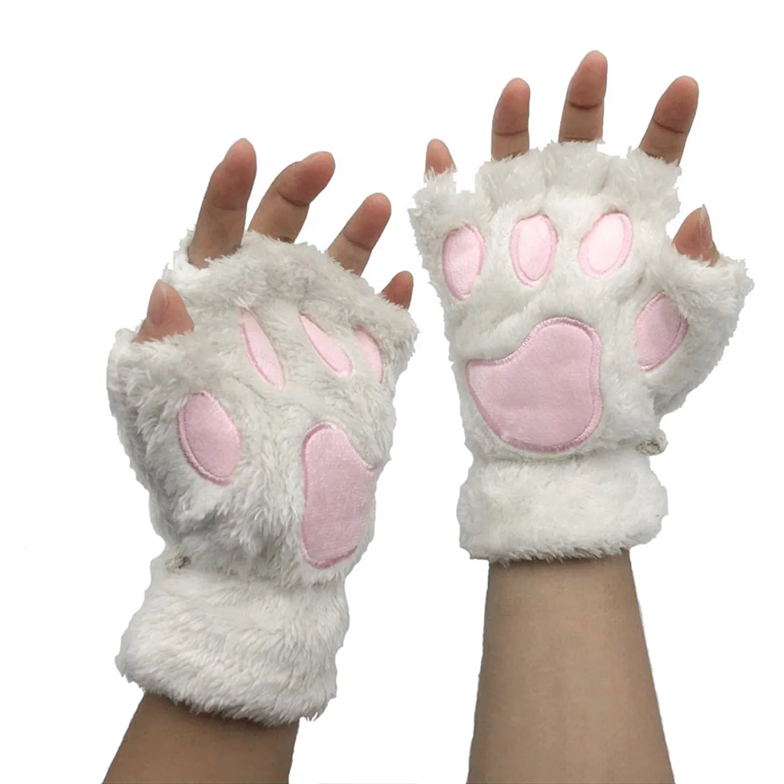 Плюшевые митенки с кошачьими лапами и медведем, Зимние Симпатичные ...