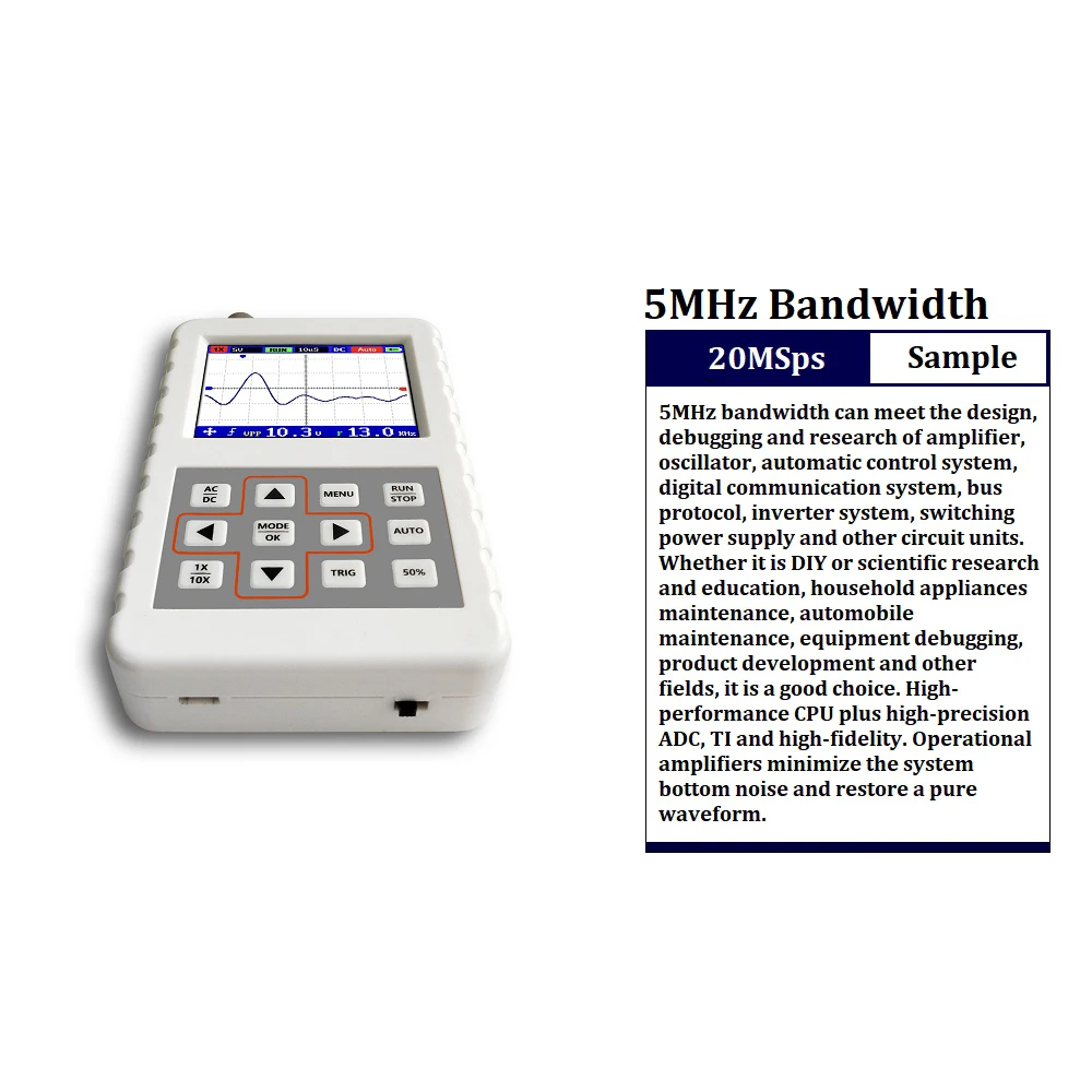 Портативный мини-осциллограф, портативный цифровой осциллограф с пропускной способностью 5 м, с зажимом и щупом, частота дискретизации 20 Мвыбсек