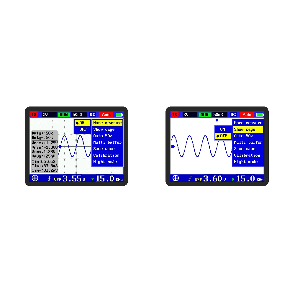 DSO FNIRSI PRO-это полнофункциональная, Высокоэффективная, высокопроизводительная и экономичная ручная осциллограф для отрасли технического обслуживания и НИОКР. Осциллограф имеет частоту дискретизации в реальном времени до 20 мс/с и аналоговую пропускную способность 5 МГц. С полной функцией запуска (одиночный, нормальный, автоматический), можно свободно использовать как аналоговый сигнал, так и аперитив цифрового сигнала. Режим сканирования с большой базой времени может контролировать медленные изменения уровня. Оснащен высокой эффективностью одной кнопкой авто, измеренная форма сигнала может отображаться без сложной регулировки. Дисплей в Высокое разрешение ЖК-дисплей экран оснащен 2,4 дюймов 320*240 разрешение. Чрезвычайно удобная и быстрая функция хранения сигналов, встроенная память объемом 16 Мб, Максимальная память 500 изображений формы волны. Мощный файловый менеджер waveform, поддержка просмотра эскизов, просмотра, просмотра деталей, переворачивания, удаления и других функций. Встроенный перезаряжаемый литиевый аккумулятор емкостью 1200 мАч может непрерывно заряжаться в течение 3 часов одновременно. Дневной режим и ночной режим могут быть изменены в соответствии с их собственными предпочтениями