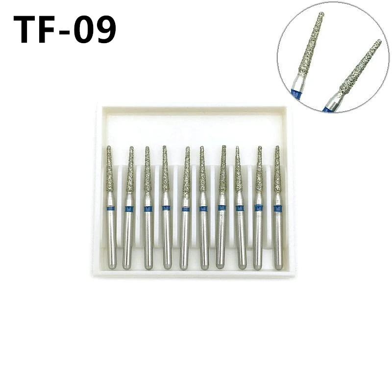 Характеристика: 1. Номер товара: TF-09 2. Зернистость: синий/средний 3. ISO 806 314 172 524 014 4. FG 1,6 мм для высокоскоростных наконечников 5. Только для Стоматологического использования, нельзя использовать для лака для ногтей 6. Натуральный Эмери Порошок, высокая твердость, он может убедиться, что bur резкость. 7. Высококачественный стебель из нержавеющей стали, высокая прочность, без ржавчины. 8. Он может быть дезинфицирован при высокой температуре и высоком давлении. 9. Максимальная допустимая скорость составляет 400000/мин.