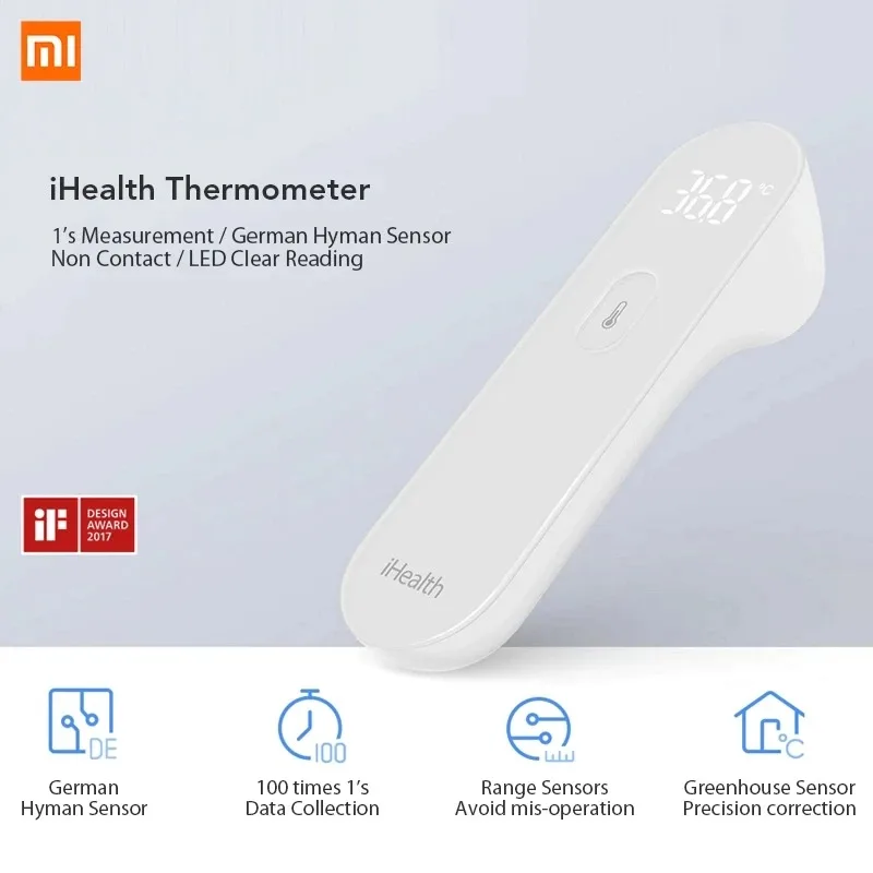 Термометр iHealth от Xiaomi предназначен для определения температуры тела. Бесконтактное измерение производится за одну секунду. Термометр оснащен немецким датчиком Heimann и светодиодный (светодиодный) экран для четкого чтения. Награжден Премией Германии iF Design Award.