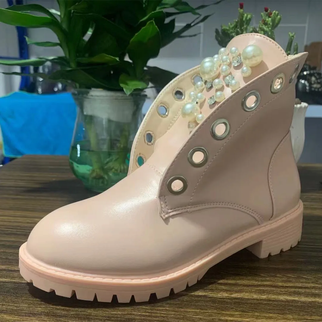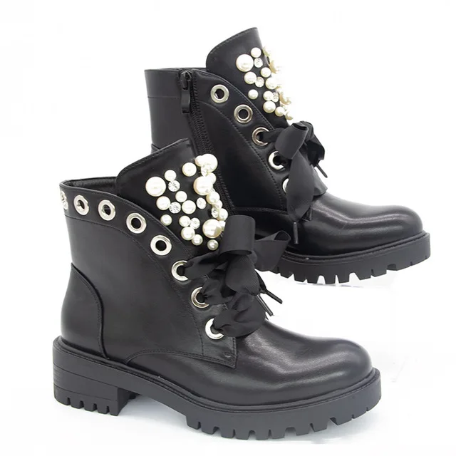Женские короткие ботинки 2021, женские кожаные ботильоны, осенняя мотоциклетная обувь на платформе для женщин в стиле панк, размеры 36-42, зимняя обувь с жемчужными заклепками