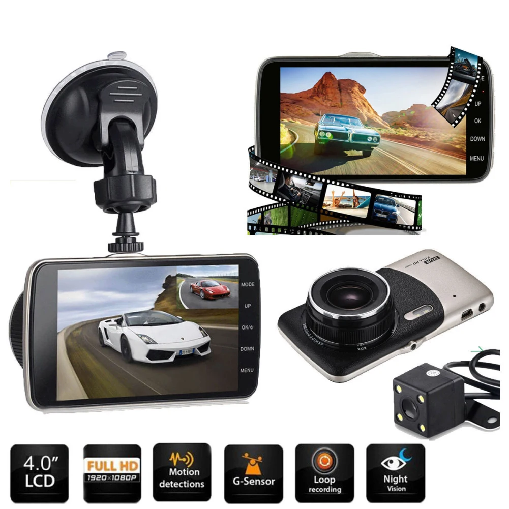 Автомобильный видеорегистратор 3,6 дюйма 1080P, видеорегистратор с двумя объективами и циклической записью, датчик гравитации, обнаружение движения, мониторинг парковки