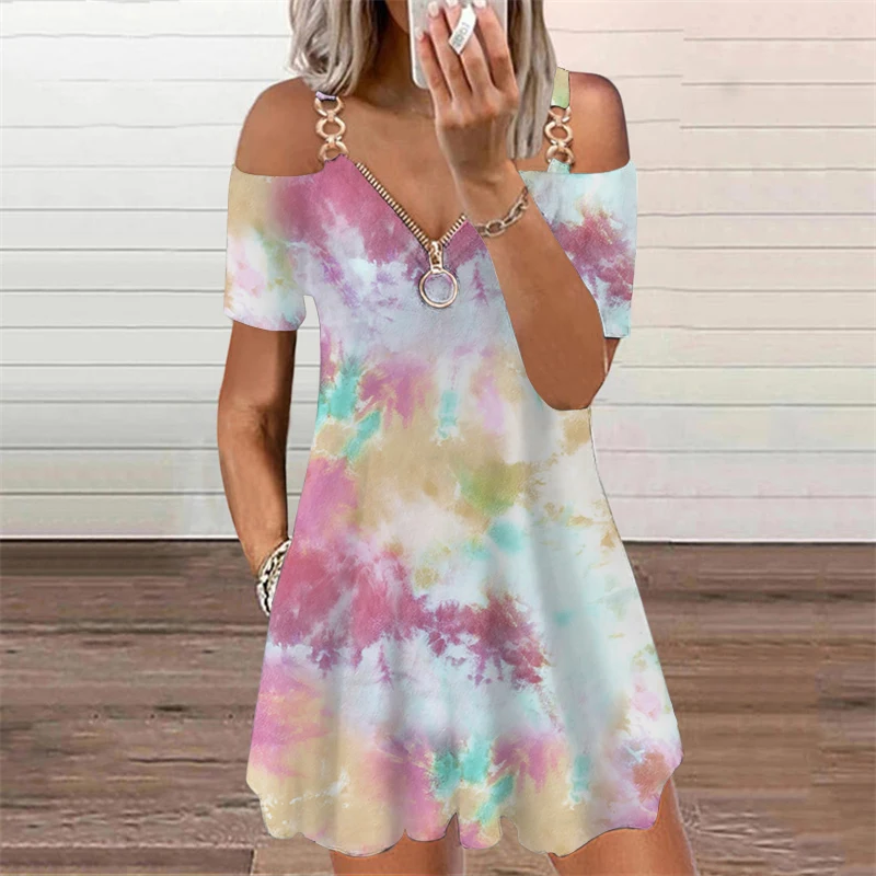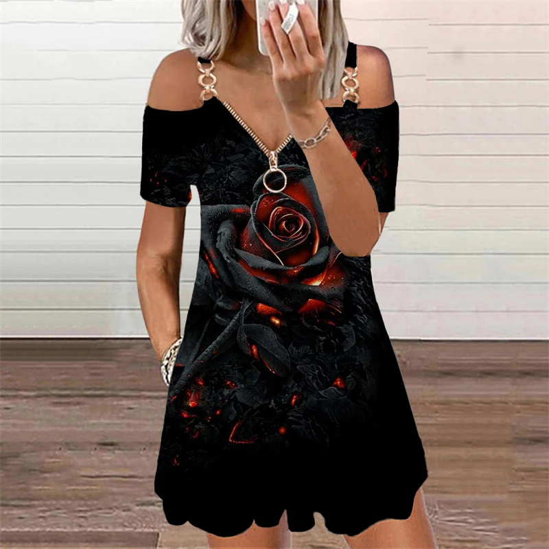 Женское мини-платье с открытыми плечами, коротким рукавом и цветочным принтом