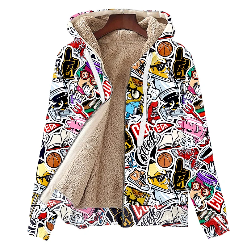 Теплая мужская зимняя куртка большого размера из флиса, стеганая уличная одежда с 3D рисунком граффити для колледжа, женское винтажное пальто с подкладкой на осень и зиму