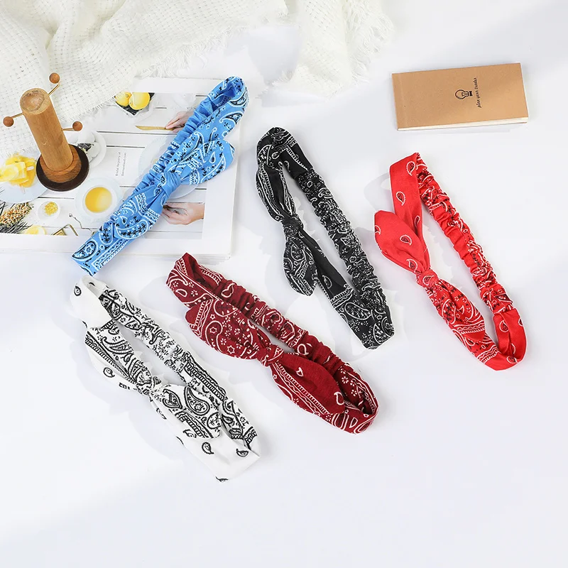 Новые женские мягкие однотонные повязки на голову с принтом в стиле бохо, Винтажные эластичные повязки на голову с перекрестным узлом, тюрбан, банданы для девочек, обручи для волос, аксессуары для волос