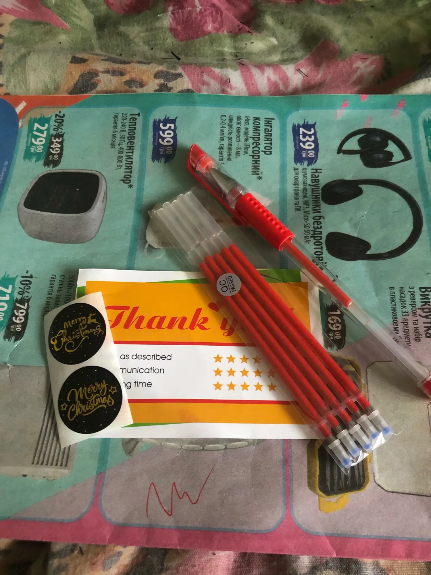 Отличная ручка с набором паст были доставлены очень быстро.Удобная ручка ,пасты не высохшие,яркое чернило, пишут тоненько .Покупала с купоном от продавца за смешную цену.Спасибо продавцу за честность ,быструю отправку и отличный товар,к покупке могу рекомендовать.