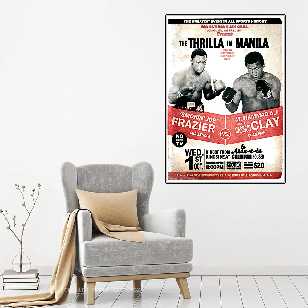 Винтажный художественный большой плакат на холсте влагалища хаммеда Али против Джо Фрейзера в Маниле, Подарочный настенный художественный плакат для домашнего декора