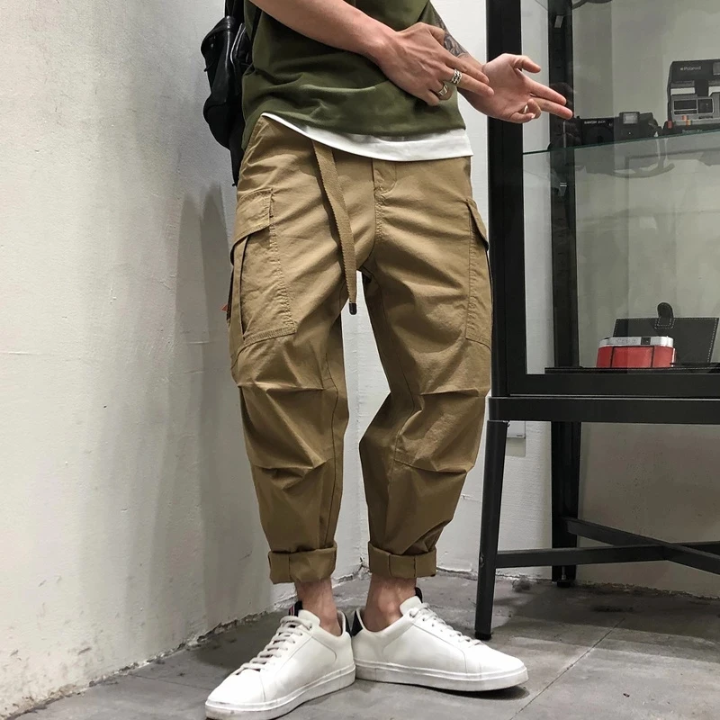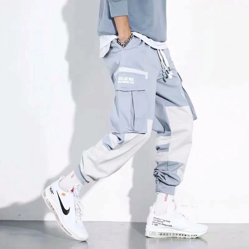 Штаны-карго HOUZHOU мужские, джоггеры, спортивные брюки, брюки-карго, корейский стиль, одежда для занятий спортом, ленты в стиле хип-хоп, черные