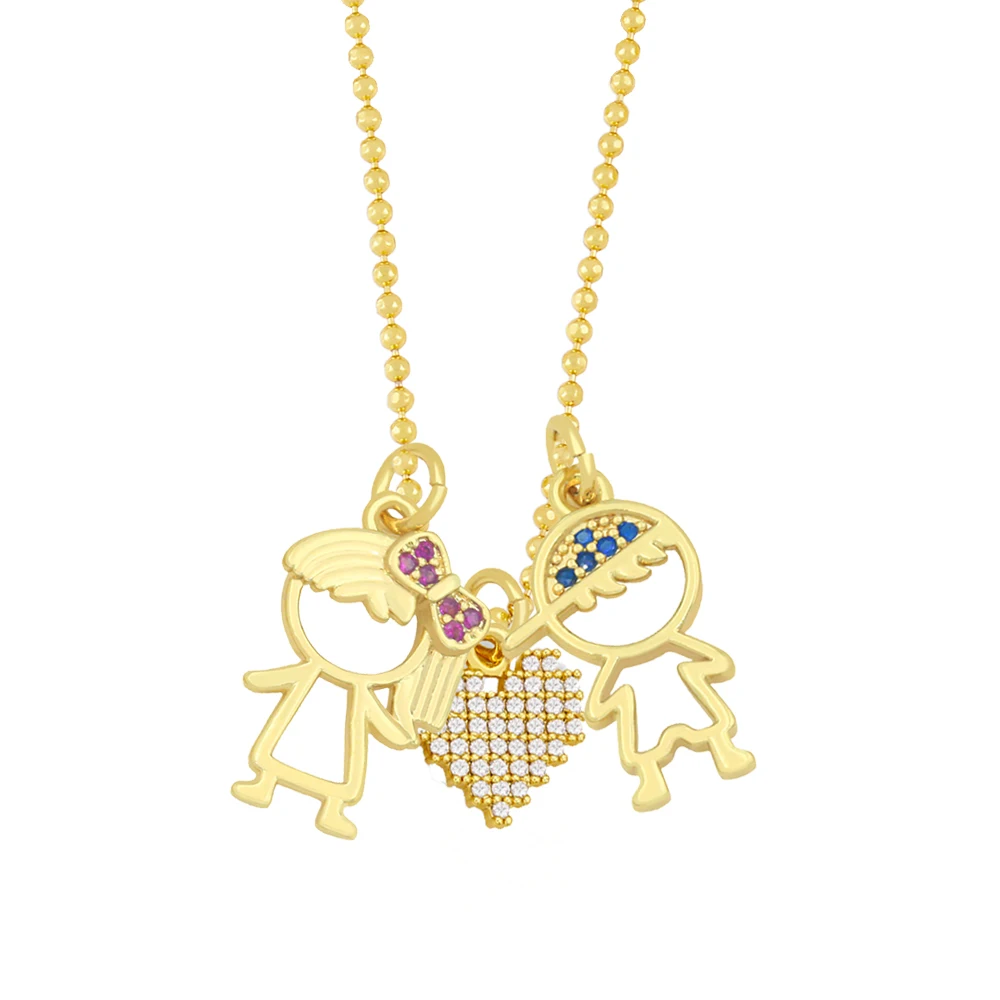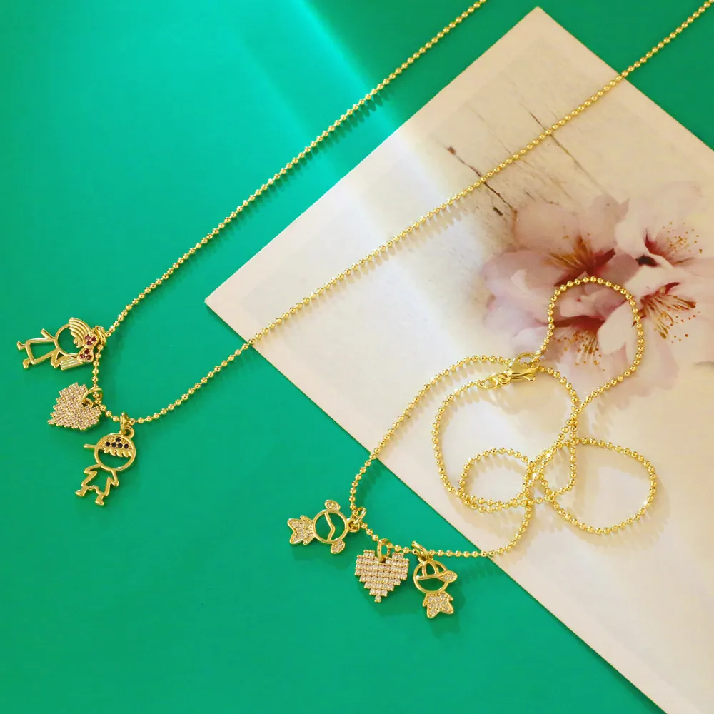 FLOLA цепочка с золотой бусиной ожерелье для мальчика и девочки, медный циркон, белый камень, маленькое сердце, ожерелья дружбы, семейные ювелирные изделия nkez27