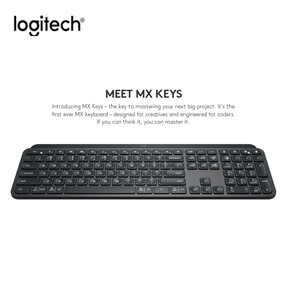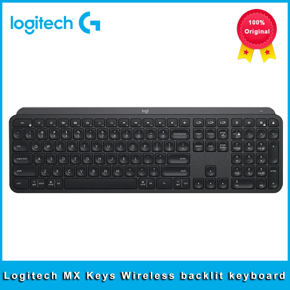 Беспроводная Bluetooth-клавиатура Logitech MX Keys с подсветкой, ультратонкая портативная беззвучная клавиатура для бизнеса, офиса и дома с 104 клавишами