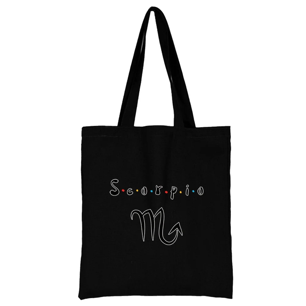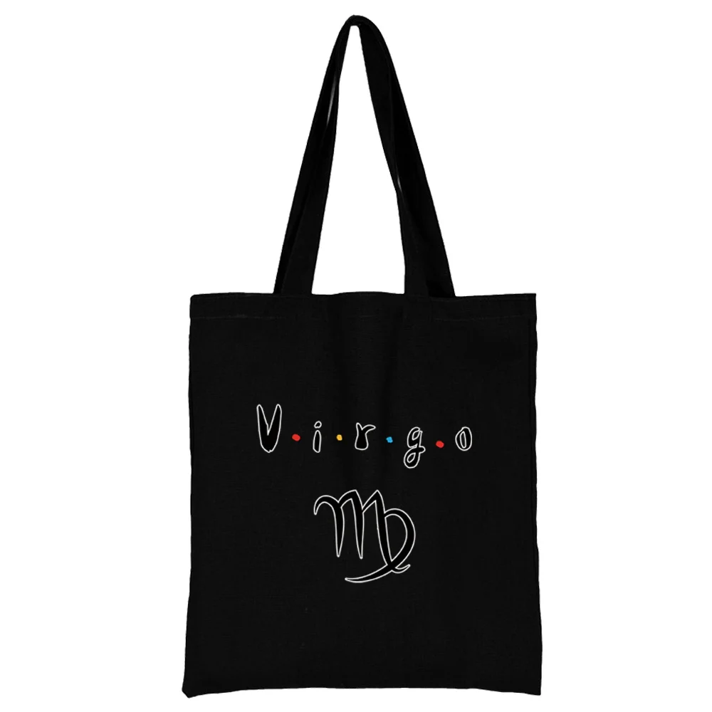Женская Черная сумка для покупок, повседневная вместительная сумка через плечо, многоразовая Холщовая Сумка с принтом 12 созвездий