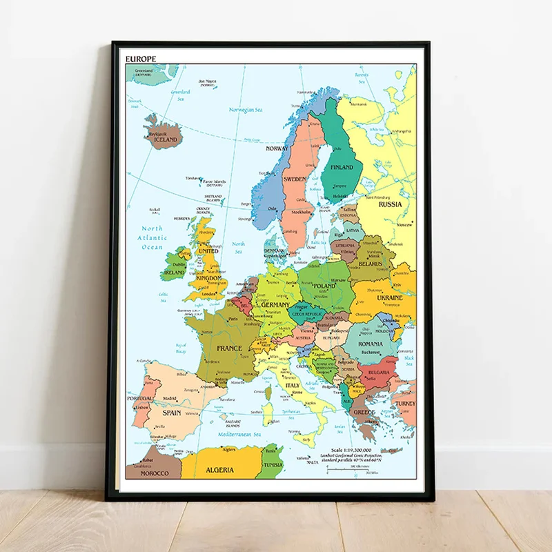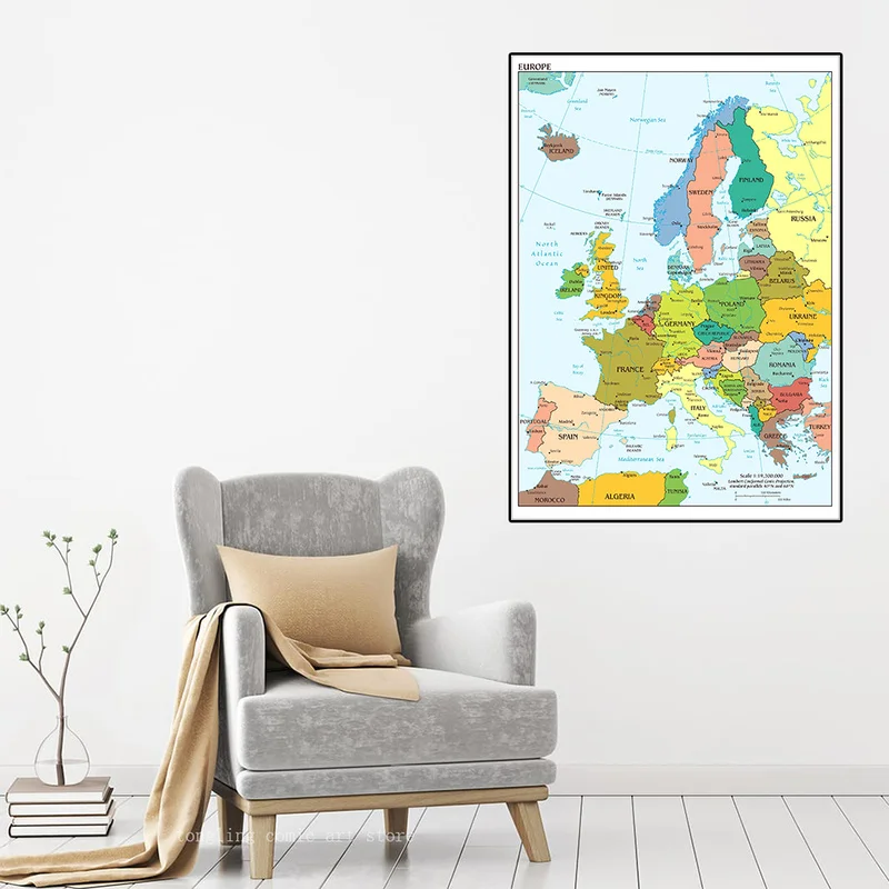 Карта Европы, ЕС, искусство, большой плакат, печать, подарок в разных размерах, настенное искусство, гостиная, спальня, офис, декоративная живопись
