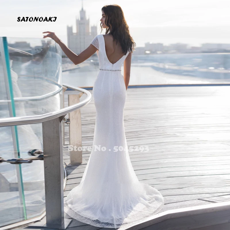 Женское свадебное платье-Русалка с V-образным вырезом, открытой спи...