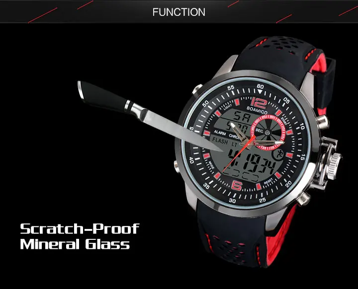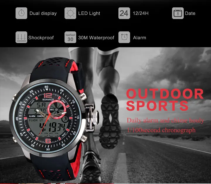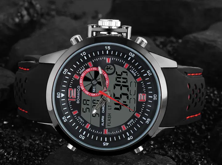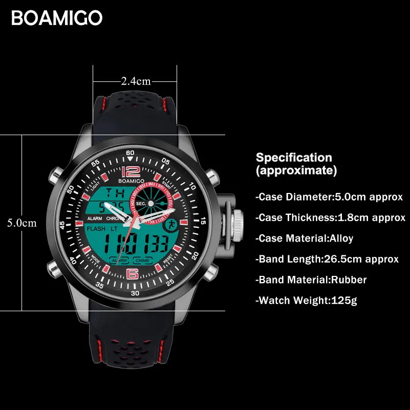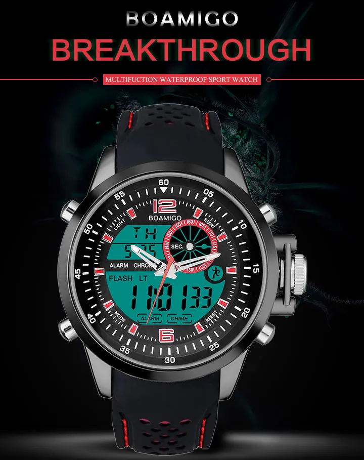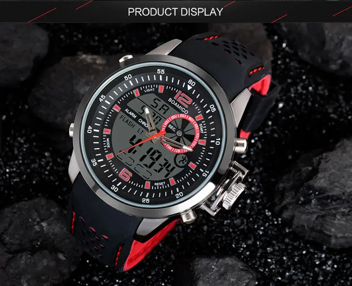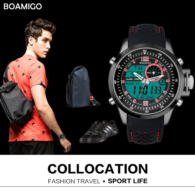 BOAMIGO Роскошные Дизайнерские мужские часы Красные спортивные часы relojes de cuarzo цифровые часы кварцевые наручные часы relogio masculino