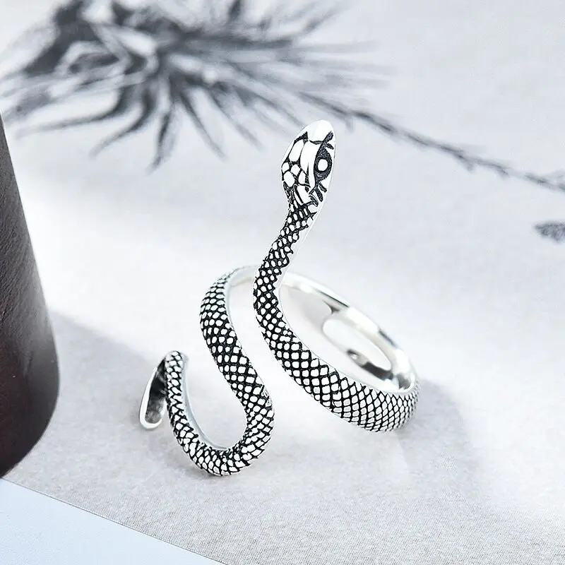 Женские винтажные Открытые Кольца SRI1014 в виде змеи из тайского с...