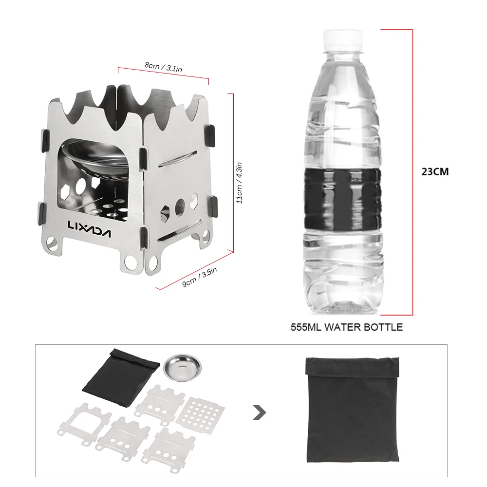 Эта дровяная плита складная и легкая, очень удобна в переноске. Это должно быть для всех крупных туристов, выживших и кемперов. Особенности: Складной и портативный: Легкий и компактный, складывается плоско за считанные секунды, чтобы поместиться в любой карман. Прочная структура: прочная титановая конструкция создает стабильную платформу для вашей посуды, легкая и прочная. Научный Дизайн: с отверстием для удобного добавления дерева. Вентиляционные отверстия для хорошей вентиляции и эффективного сжигания. Неограниченное количество источников топлива: готовьте муку с помощью веток, веток, листьев. Попрощайтесь с тяжелыми, дорогими, загрязняющими бензин топливами. Дружественный: Нет топливных канистр, нет химических выбросов, не требуется батареи, меньше углеродного следа. Поставляется с мешком для хранения для удобной переноски, отлично подходит для кемпинга, рыбалки, альпинизма, пеших прогулок, пикника и т. Д.