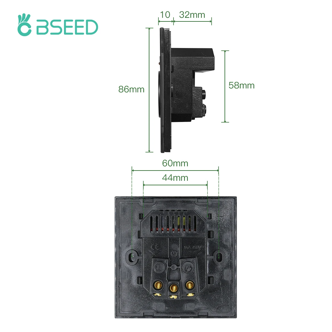 BSEED штепсельная вилка европейского стандарта с usb-розеткой 16А, двойной usb-разъем для зарядки телефона, порты 2,1 А, 5 В, стеклянная панель, светодиодный индикатор ВКЛ/ВЫКЛ